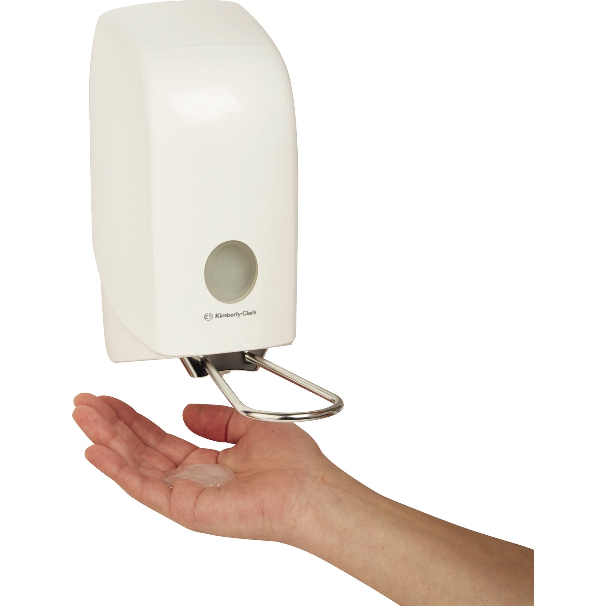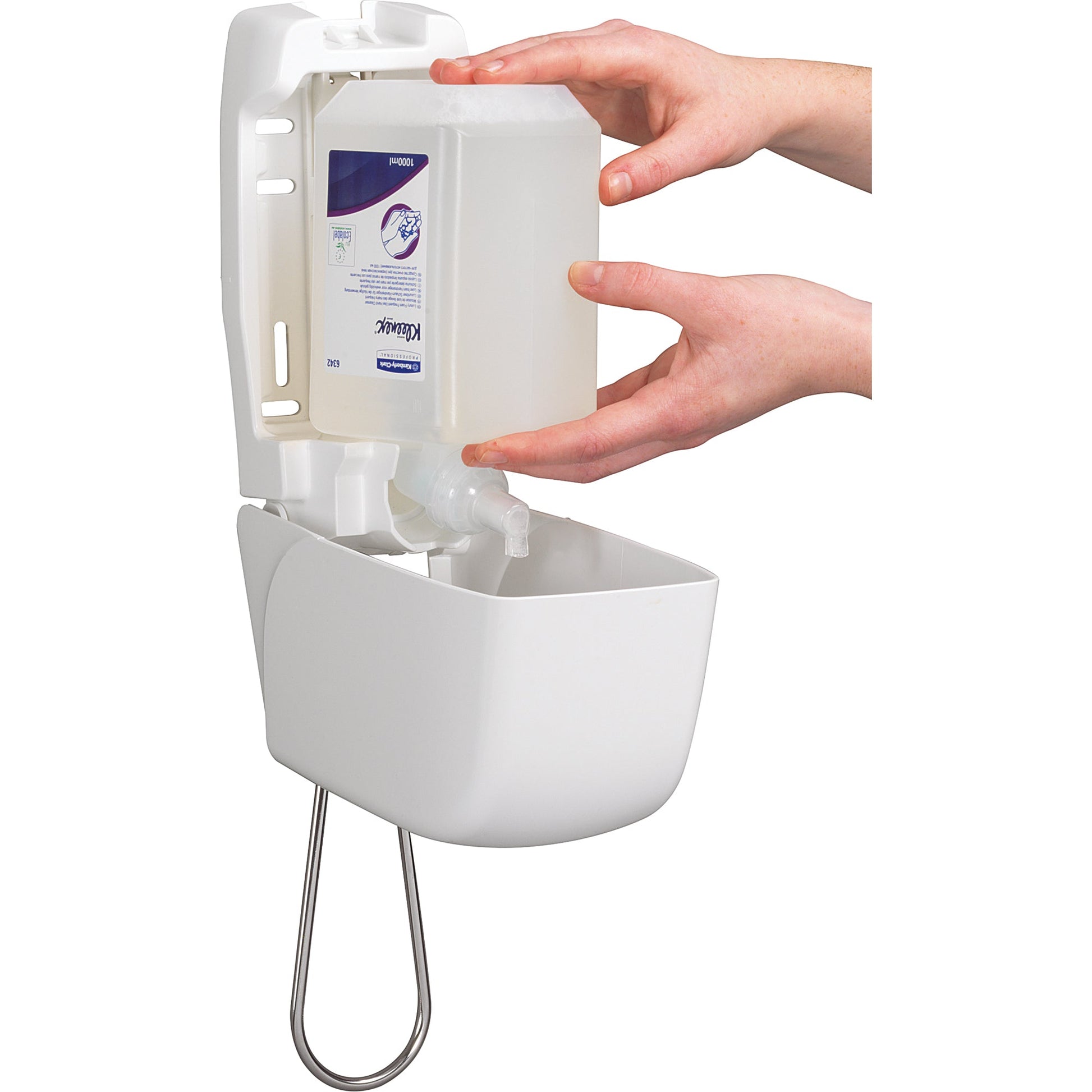 weißDer Flüssigseifenspender ist mit einer Vielzahl von Waschraumprodukten kompatibel und fördert Hygiene und Kostenbegrenzung durch eine kontrollierte Abgabe. Das elegante und moderne Design macht den Schaumseifepender zur perfekten Ergänzung für jede Waschraumumgebung. Der Wand- Seifenspender besticht durch abgerundete Kanten und kann leicht mit einem Wisch- oder Putztuch gereinigt werden. Die abgeschrägte Oberseite des Seifenspenders verhindert, dass sich Abfälle, Staub und Schmutz ansammeln. Der Kimberly Clark Seifenspender ist Teil unserer aufeinander abgestimmten Kollektion von Waschraumspendern und verleiht Ihrem Waschraum eine elegante und professionelle Optik. Seifenspender mit Armhebel.