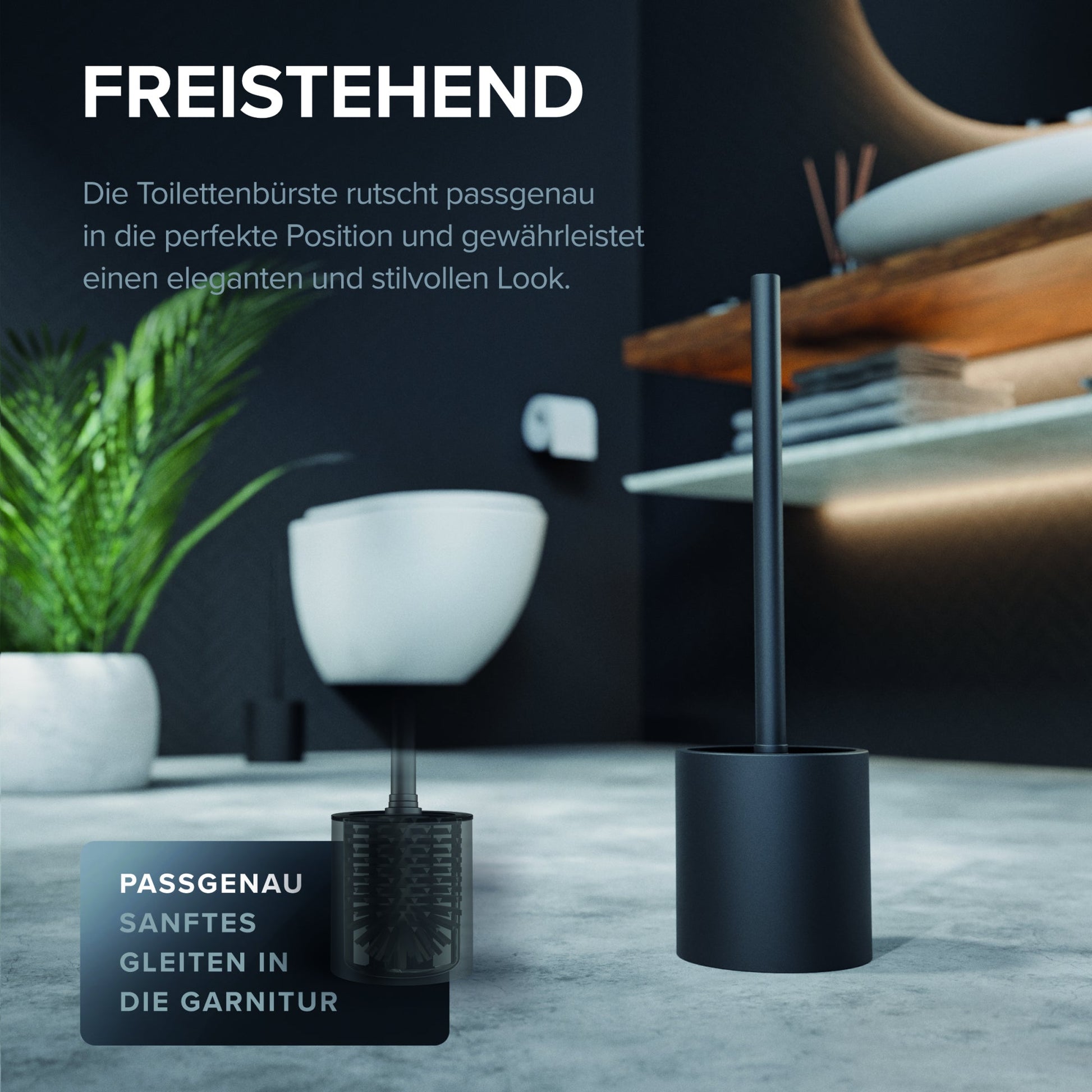 Bezeichnung: ovimar WC-Garnitur Skrova 11 x 36 cm (Ø x H) Edelstahl/Glas/TPE Kunststoff matt schwarz