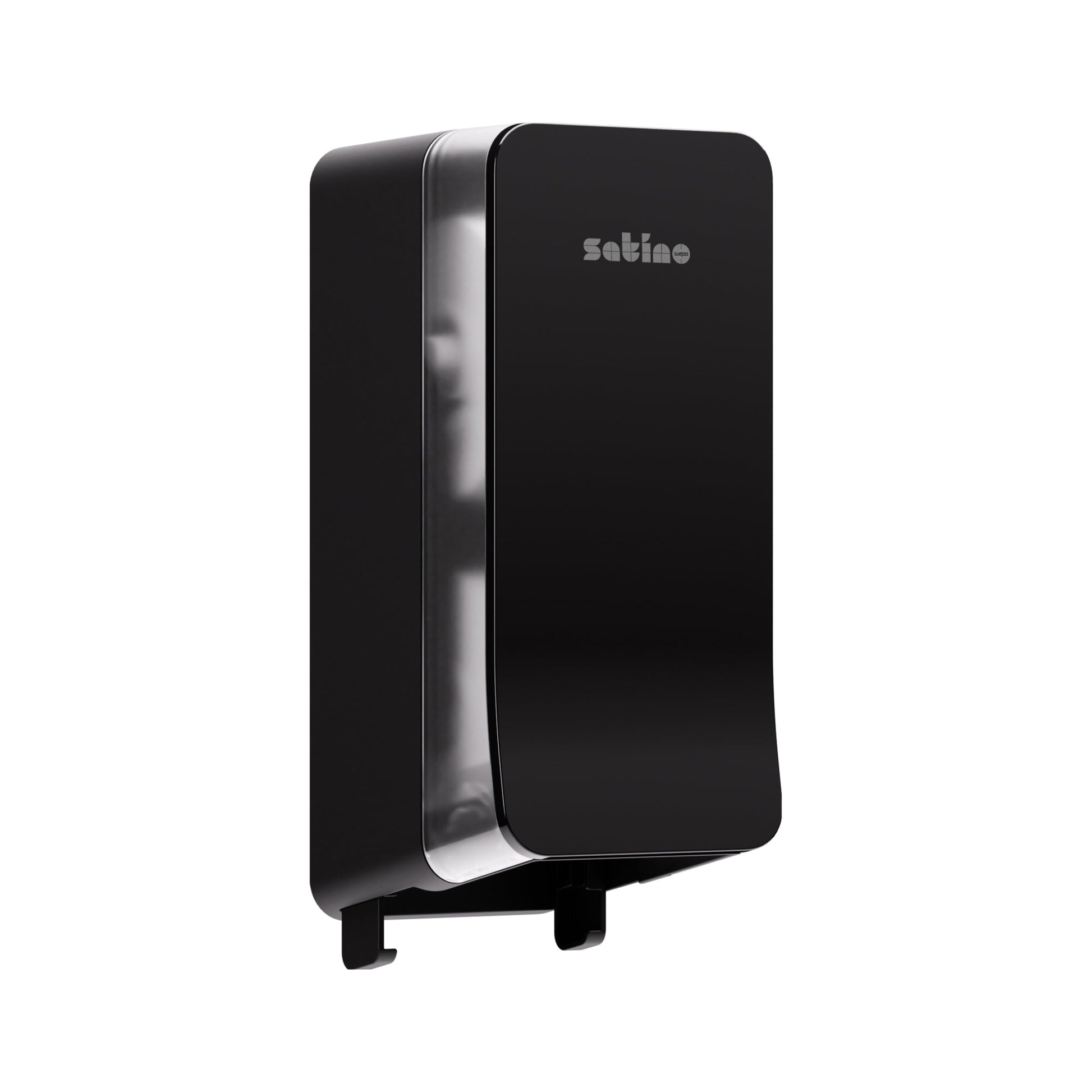 Bezeichnung: Satino by WEPA Toilettenpapierspender Doppel System Satino Toilettenpapier PureSoft 307140, Comfort 317960, 313910 Großrolle 14,7 x 37,9 x 17,7 cm (B x H x T) ABS Kunststoff, 100 % recycelt schwarz