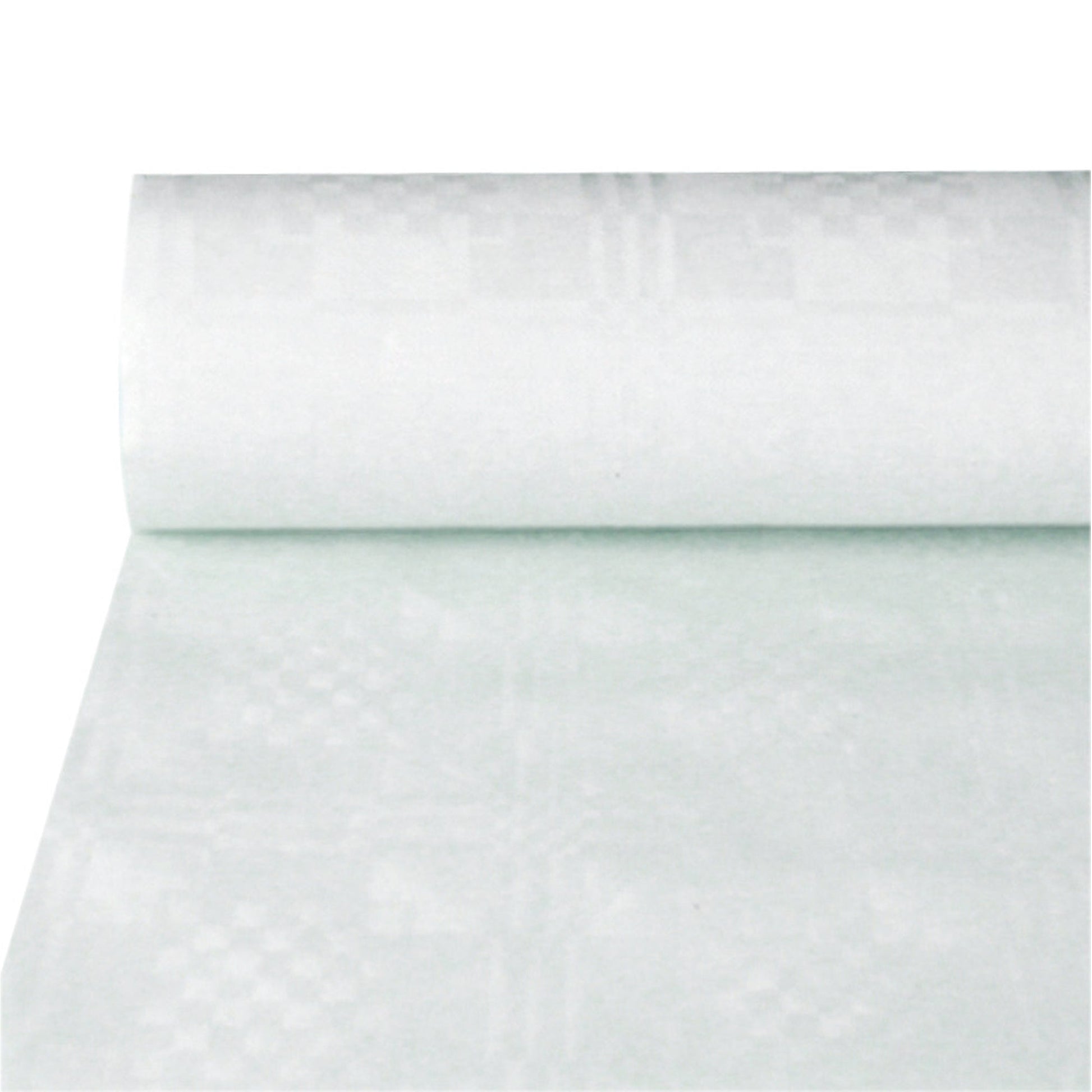Bezeichnung: PAPSTAR Tischtuchrolle Damast 1 x 50 m (B x L) 40g/m² Papier, 100 % recycelt weiß