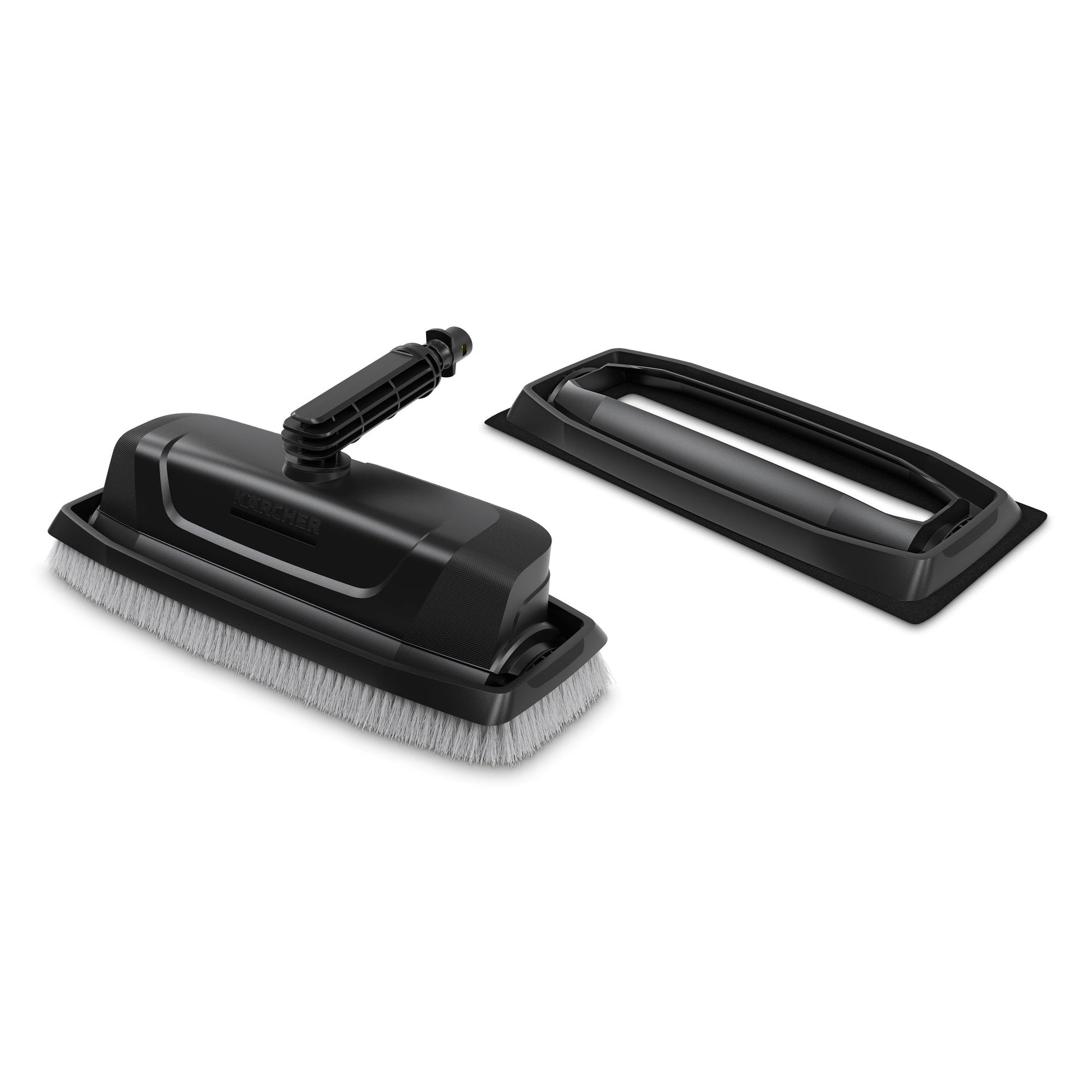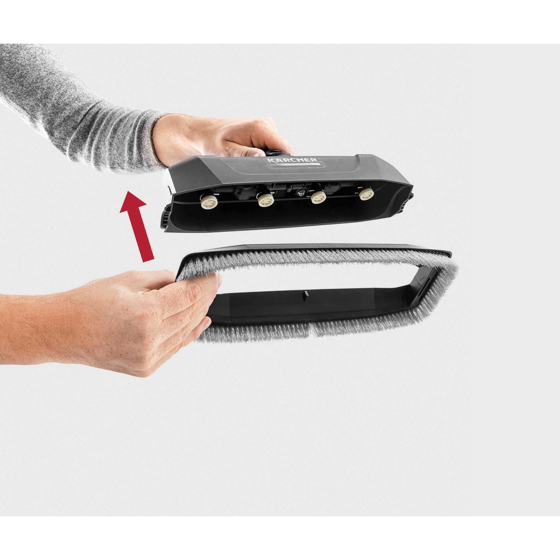 schwarzGleichmäßige und hocheffektive Reinigung: Die 4 verbauten Hochdruckdüsen beseitigen hartnäckige Verschmutzungen auf diversen Oberflächen. Je nach Anwendung können die mitgelieferten Wechselrahmen einfach und schnell ausgetauscht werden. Der beborstete Rahmen für die Reinigung von Fassaden und Wänden schützt den Anwender vor Spritzwasser und lässt sich zudem sanft auf der Oberfläche entlang schieben. Für die Reinigung von Glasflächen, wie beispielsweise bei Wintergärten, eignet sich der Rahmen mit Mikrofaserpad, der mittels Klett angebracht ist. Die abrasiven Fasern unterstützen die Schmutzbeseitigung und garantieren eine schonende Reinigung der Oberflächen.