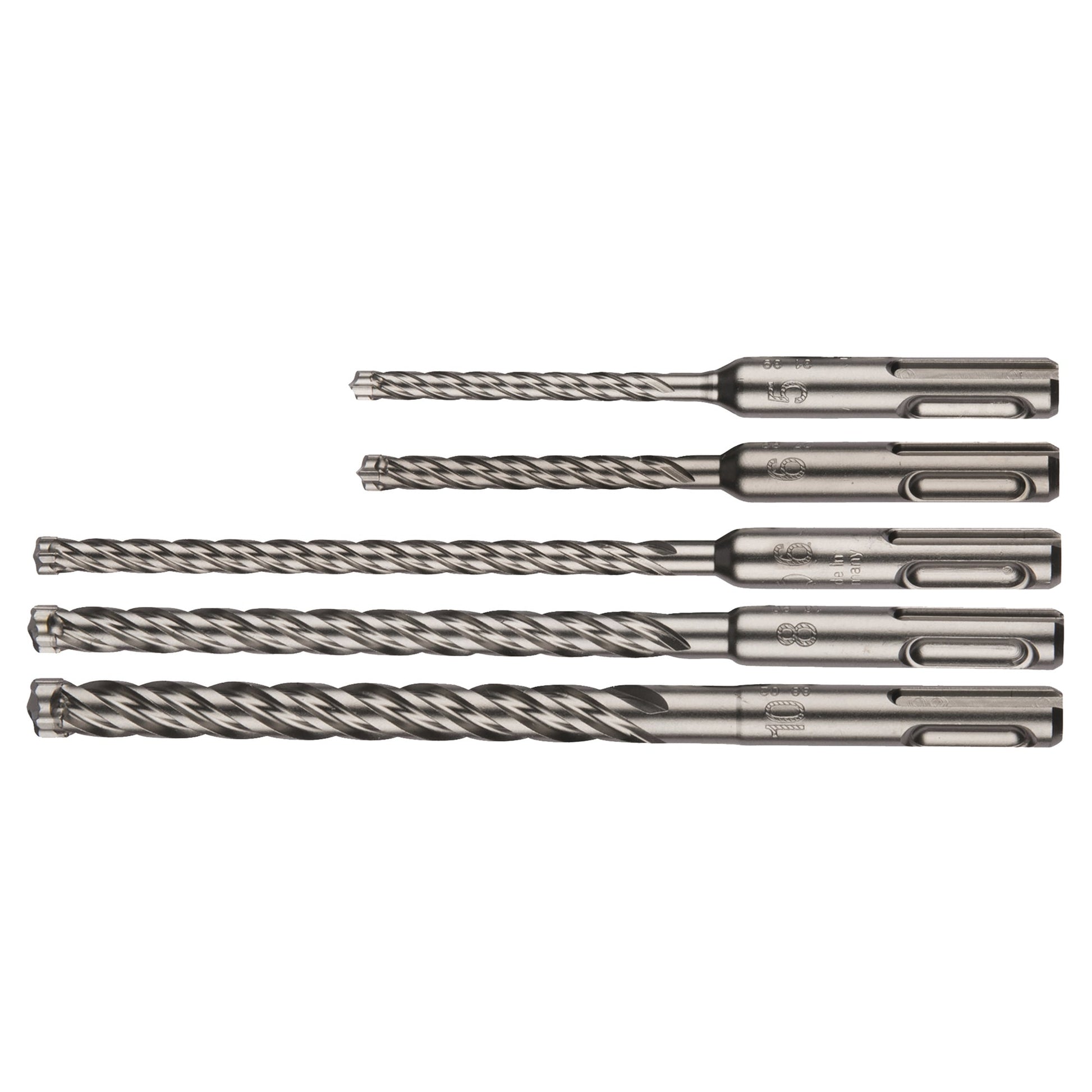 Innovative Verbesserungen des Kopfdesigns "Power Shoulders" und der Spirale "Multi-Value-Flute" machen die Nemesis II Hammerbohrer 20 % schneller beim Bohren in Beton, sorgen für eine 25 % längere Standzeit und haben dabei eine 50 % höhere Lebensdauer, insbesondere beim Bohren in armierten Beton. Ø x Länge: 5 x 115, 6 x 115, 6 x 165, 8 x 165, 10 x 165 mm. Wolframkarbid-Spitze. SDS-PLUS Aufnahme.