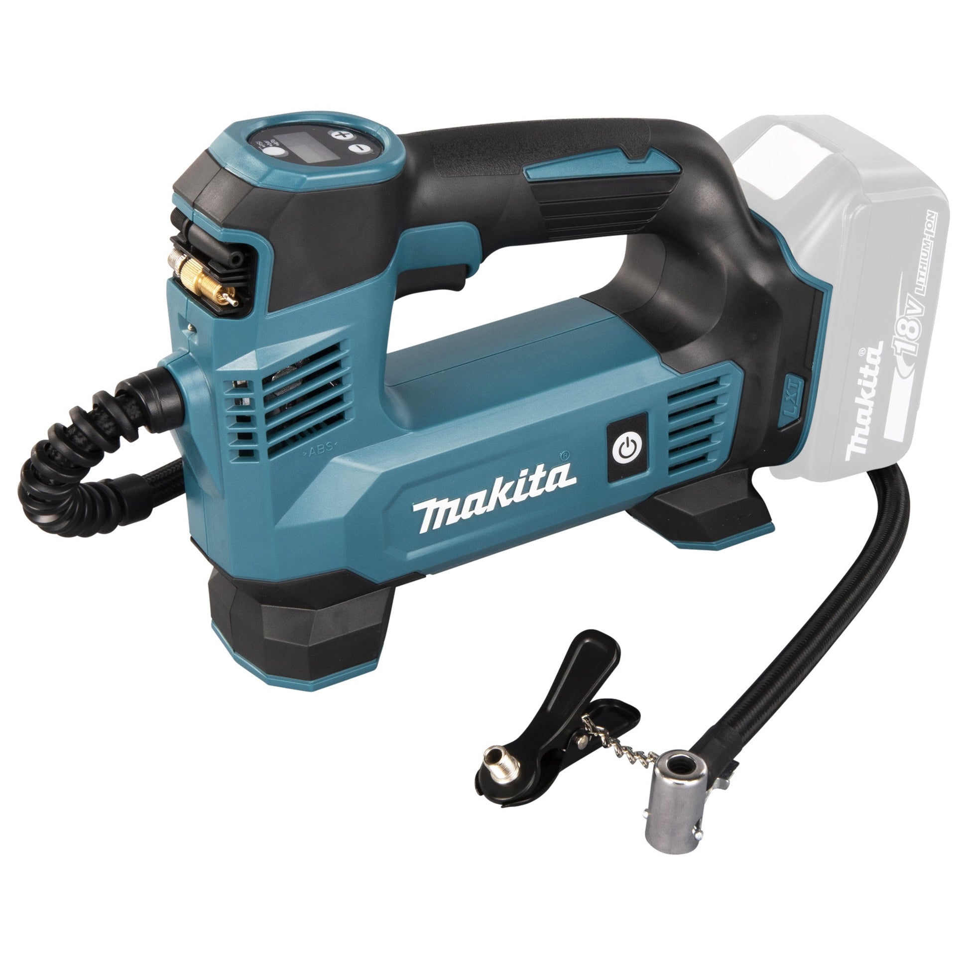 Bezeichnung: Kompressor DMP180 8,3bar 73dB Akku Zubehör erforderlich erforderliches Zubehör: Makita Akku BL1850B, Akkuladegerät DC18RC