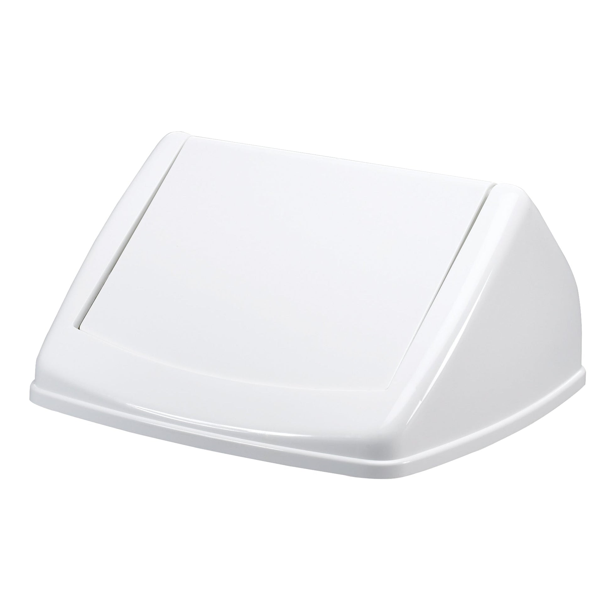 weißAbfall- und Wertstoffbehälter in Rechteckform. Ideal für Müllsammlung und Recycling-Materialien. Farbiger Deckel mit schwenkbarer Einwurfklappe.