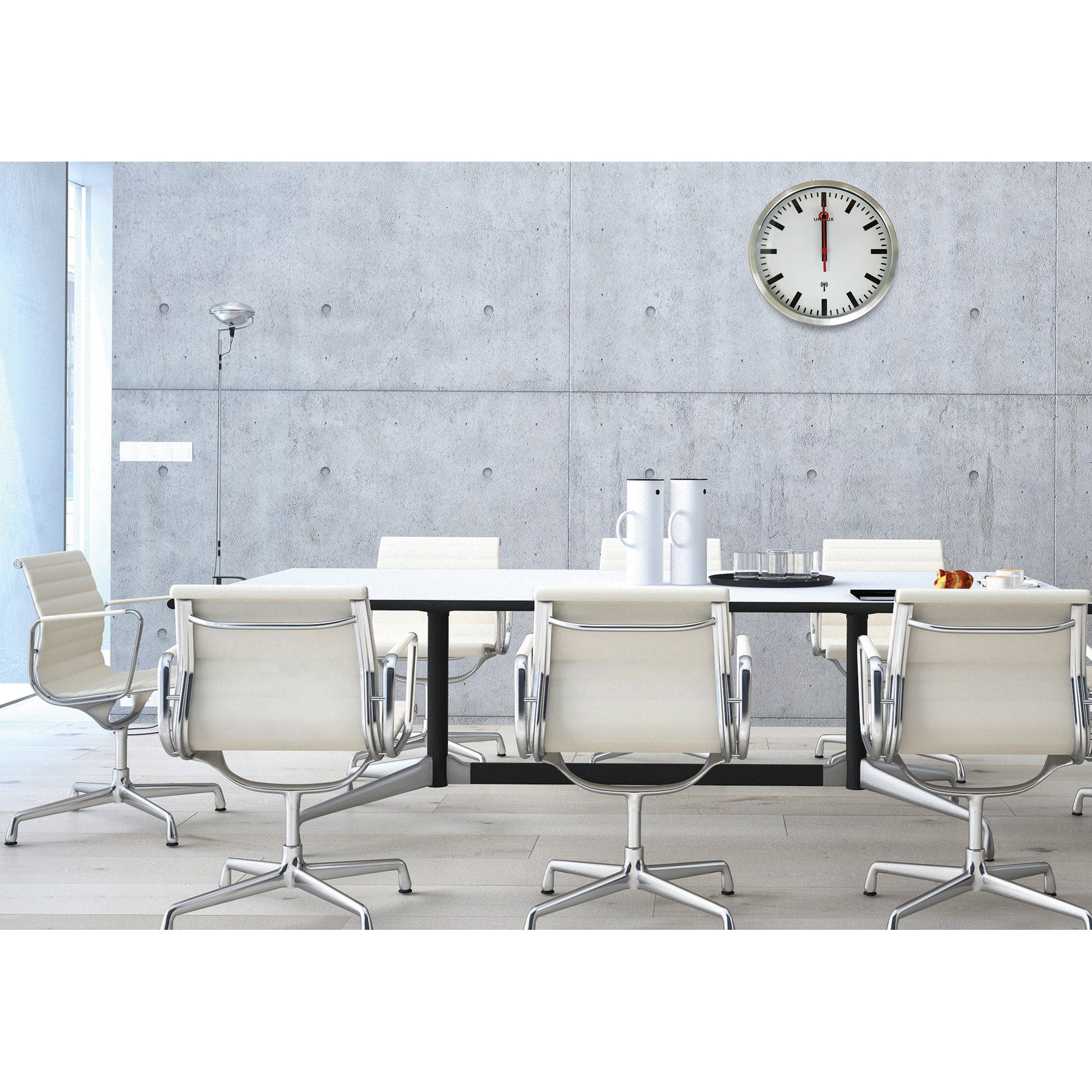 metallgrauDie klassischen Merkmale einer Bahnhofsuhr werden bei dieser Uhr kombiniert. Dank der klaren Gestaltung ist die Uhrzeit auch aus großer Entfernung gut zu lesen. Leise schleichender Zeiger stören die Konzentration im Büro oder Besprechungsraum nicht durch Tickgeräusche. Die Zeitumstellung auf Sommer- bzw. Winterzeit erfolgt automatisch. Robustes Gehäuse.