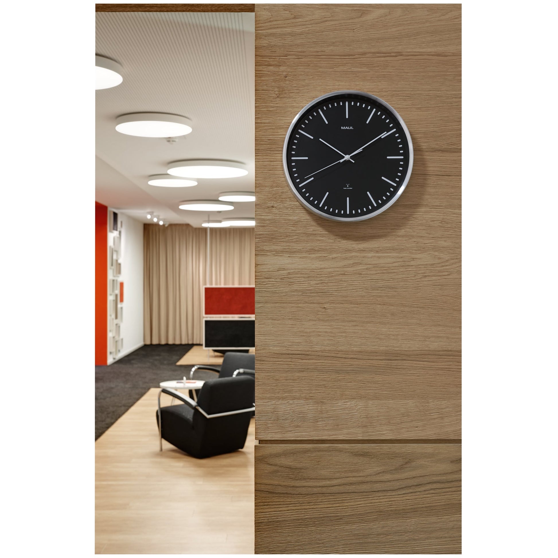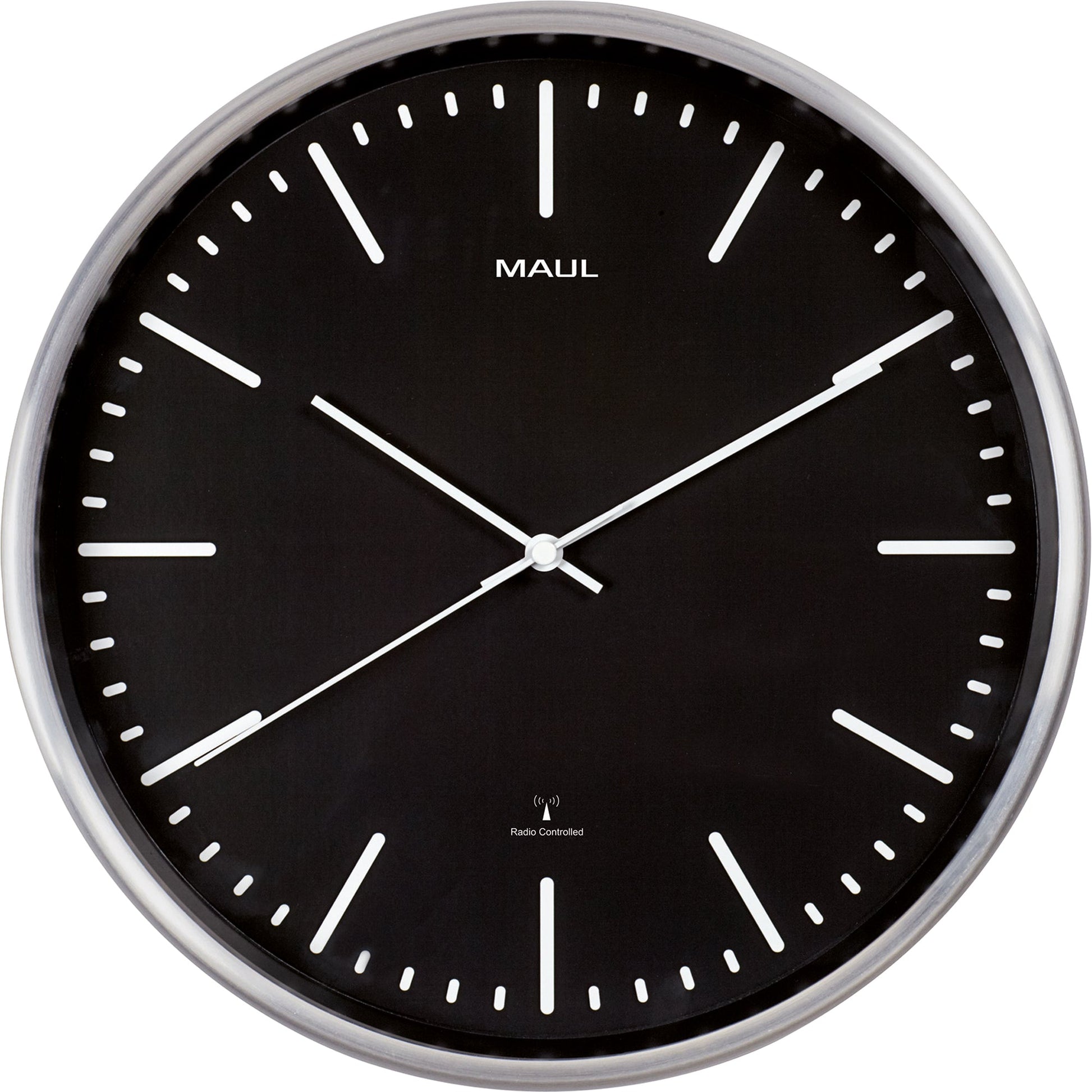 Bezeichnung: MAUL Funkuhr MAULfly 30,5cm Innenbereich Aluminium, gebürstet