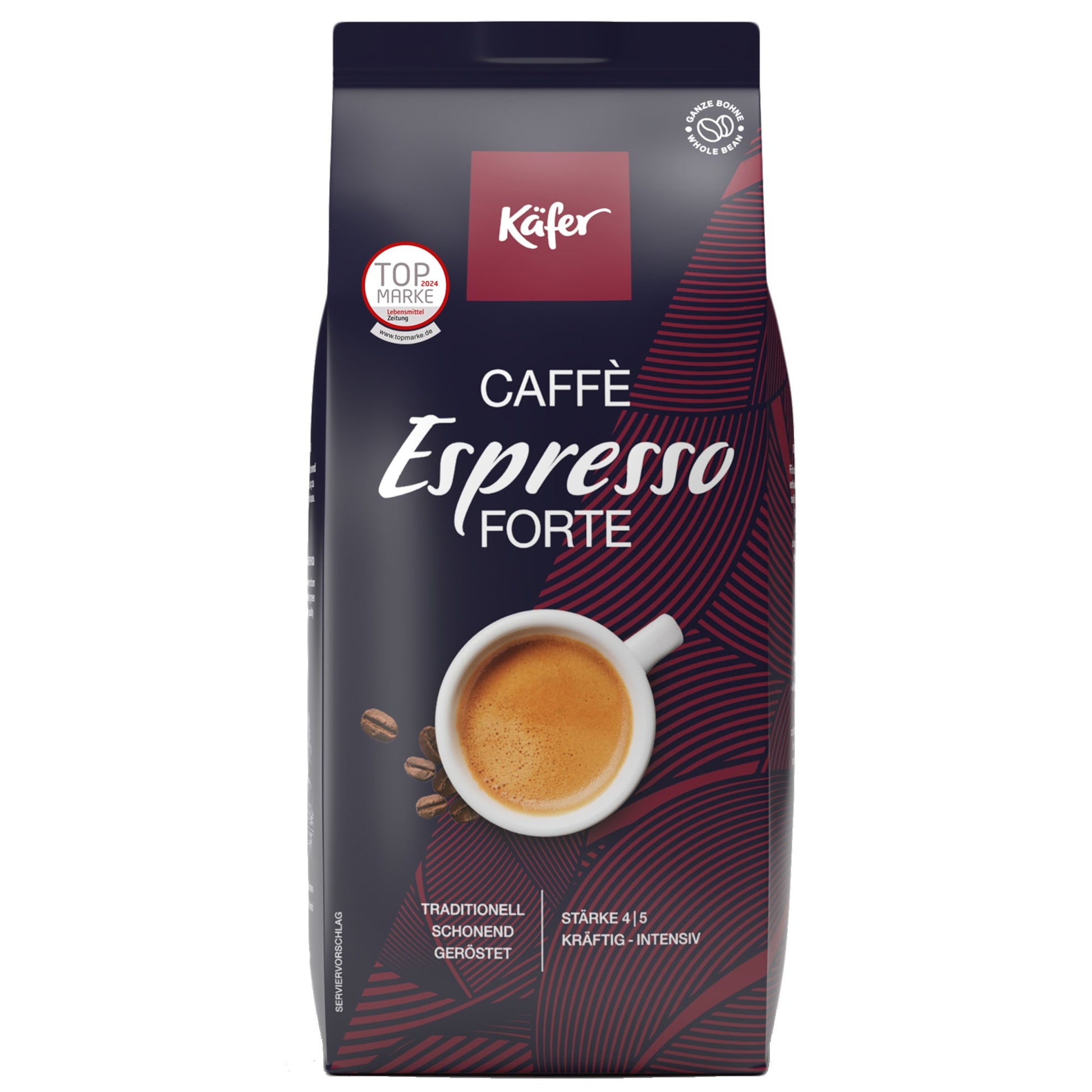 Bezeichnung: Käfer Espresso Forte kräftig, vollmundig, intensiv ganze Bohne 1.000 g/Pack.