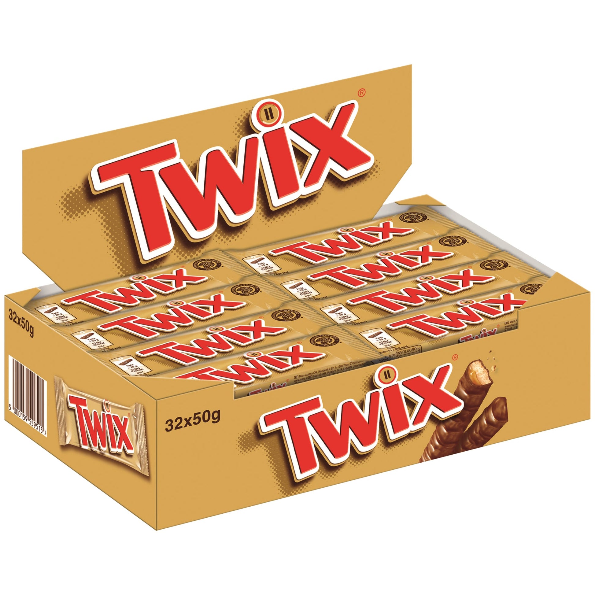 Bezeichnung: TWIX® Schokoriegel Single 32 x 50 g/Pack.