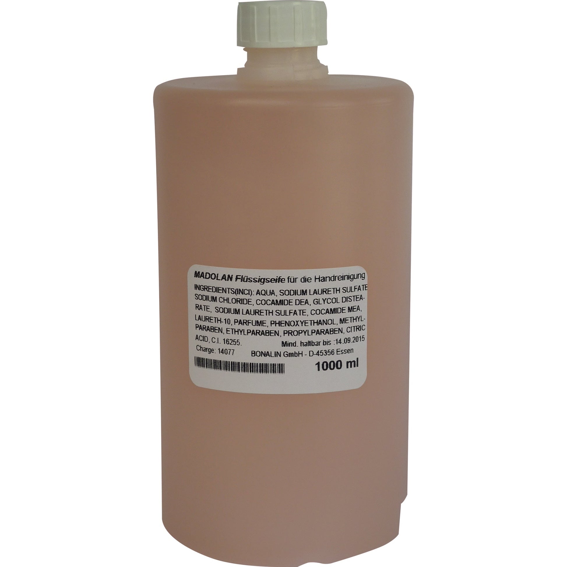 Bezeichnung: BONALIN Flüssigseife Madolan dermatologisch getestet Ausführung des Behälters: Flasche Material des Behälters: Kunststoff 1l