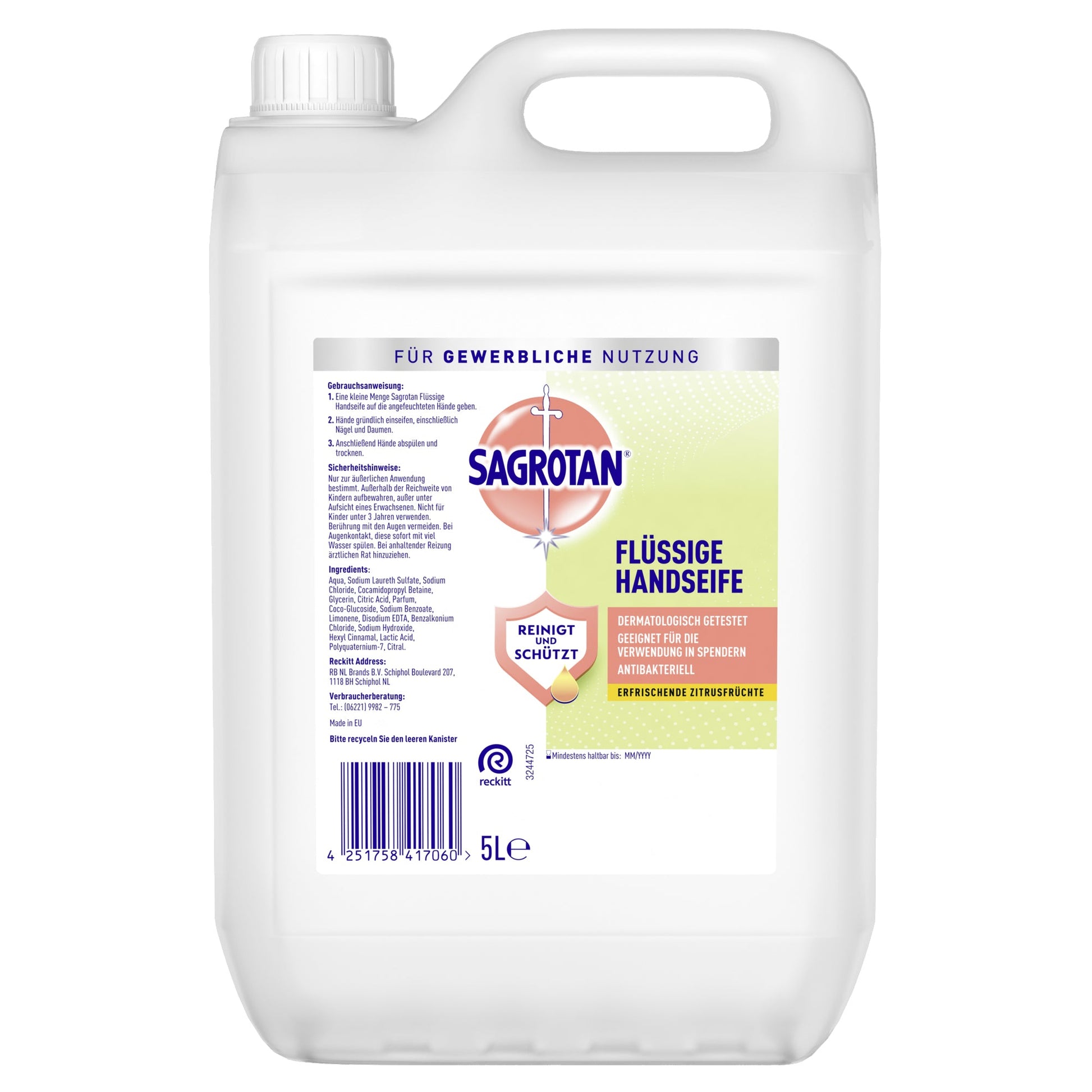 Bezeichnung: Sagrotan Flüssigseife Zitrusfrüchte dermatologisch getestet antibakteriell Ausführung des Behälters: Kanister Material des Behälters: Kunststoff 5l
