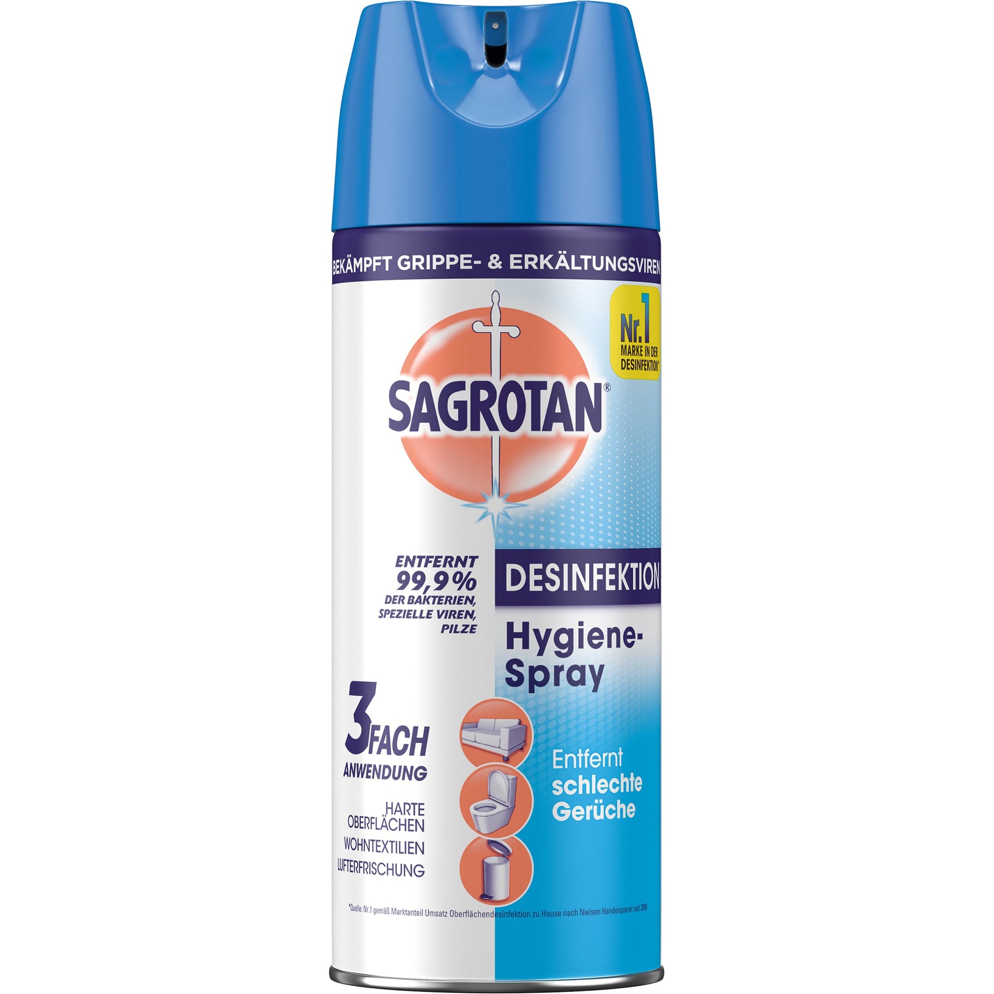 Bezeichnung: Sagrotan Flächendesinfektion nicht alkoholfrei nicht dermatologisch getestet Bakterien, Pilze, spezielle Viren 10,4-11,8 Sprühdose 0,4l