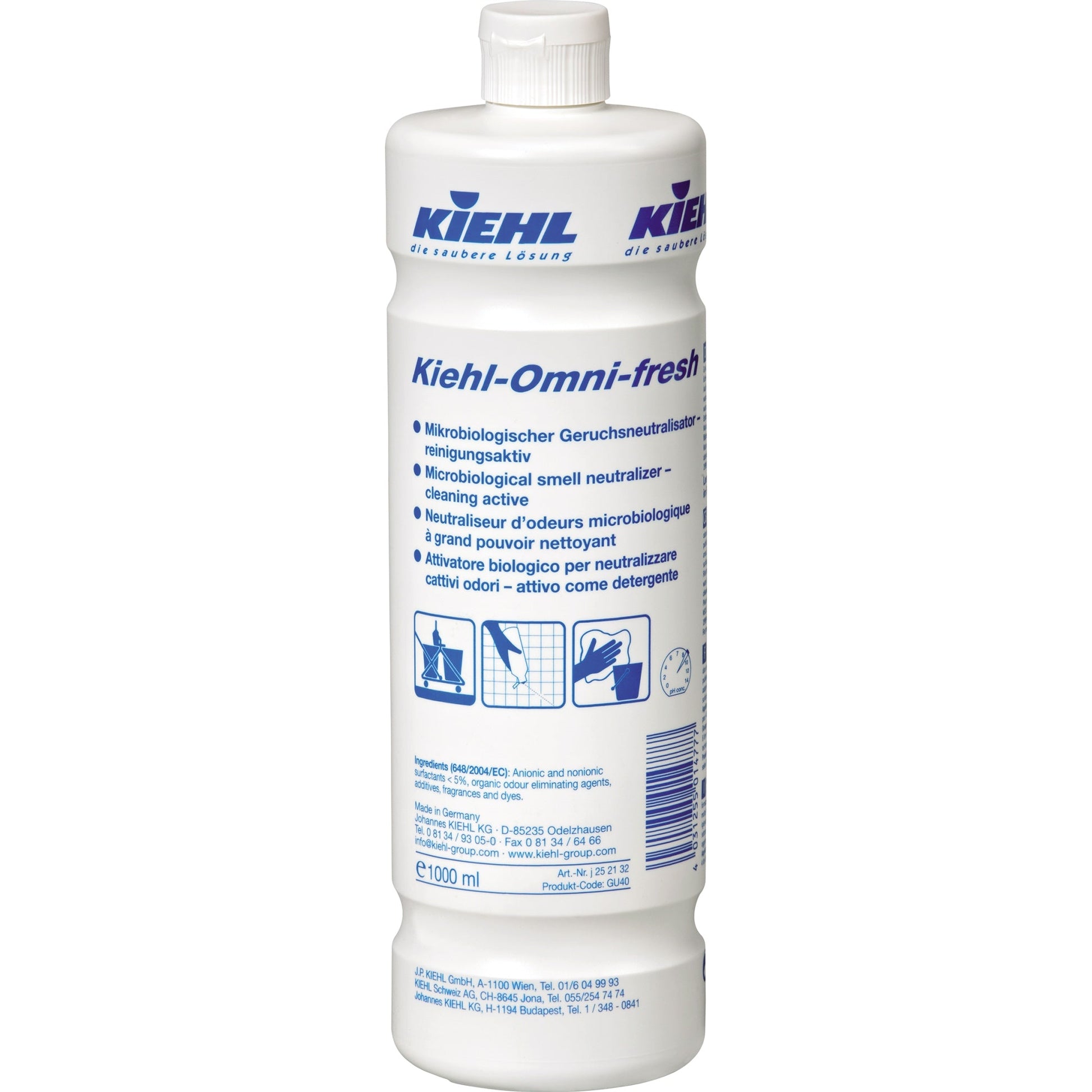 Bezeichnung: Kiehl Allzweckreiniger Omni-fresh wasserbeständigen Oberflächen, Toilettenanlagen, Mülltonnen, Abflüssen, Abfallcontainern, Bodenbeläge, Polsterbezüge nicht dermatologisch getestet 9 Flasche Kunststoff 1l