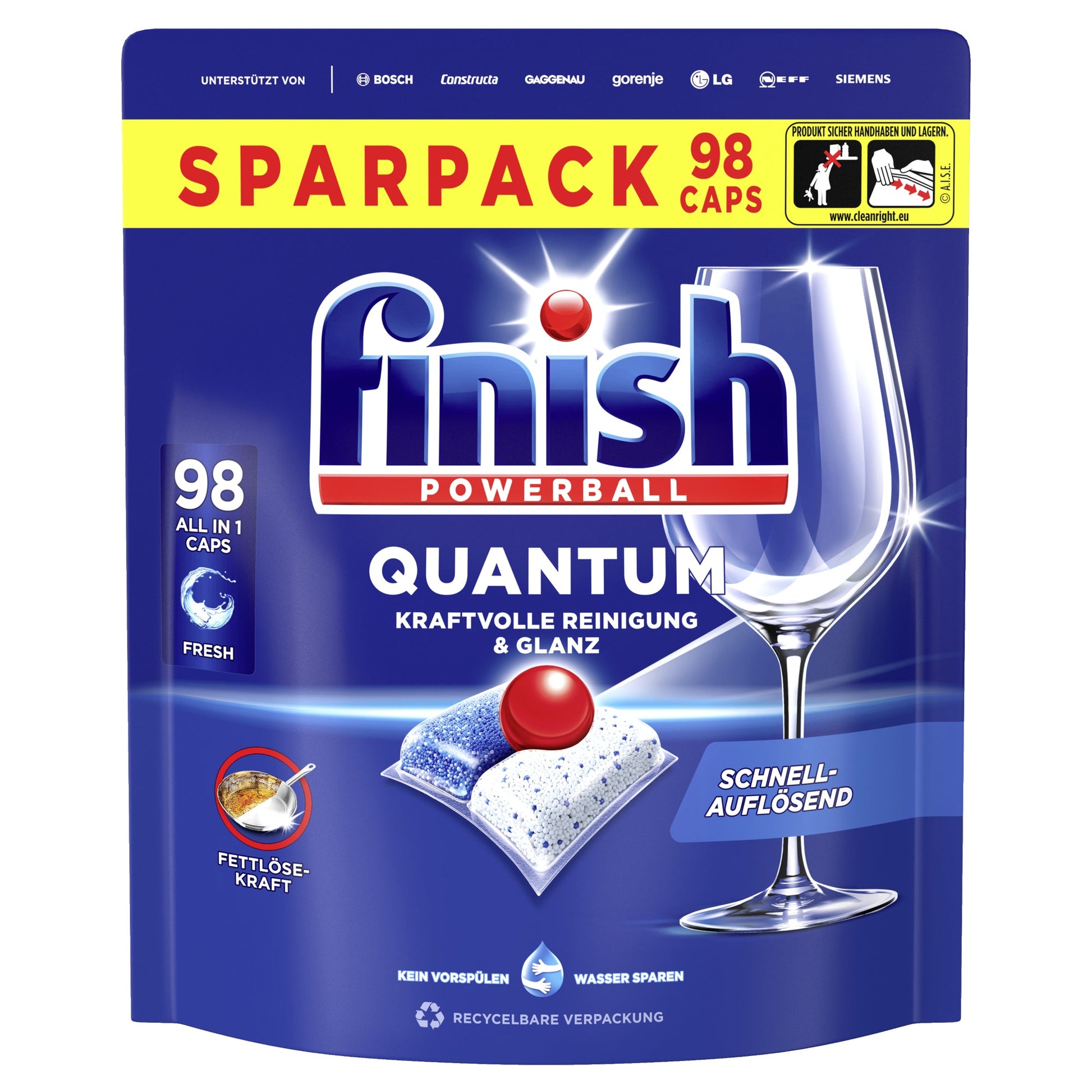 Bezeichnung: FINISH Spülmaschinentabs Quantum All in 1 Biozidprodukte vorsichtig verwenden. Vor Gebrauch stets Etikett und Produktinformationen lesen. Fresh 98 St./Pack.