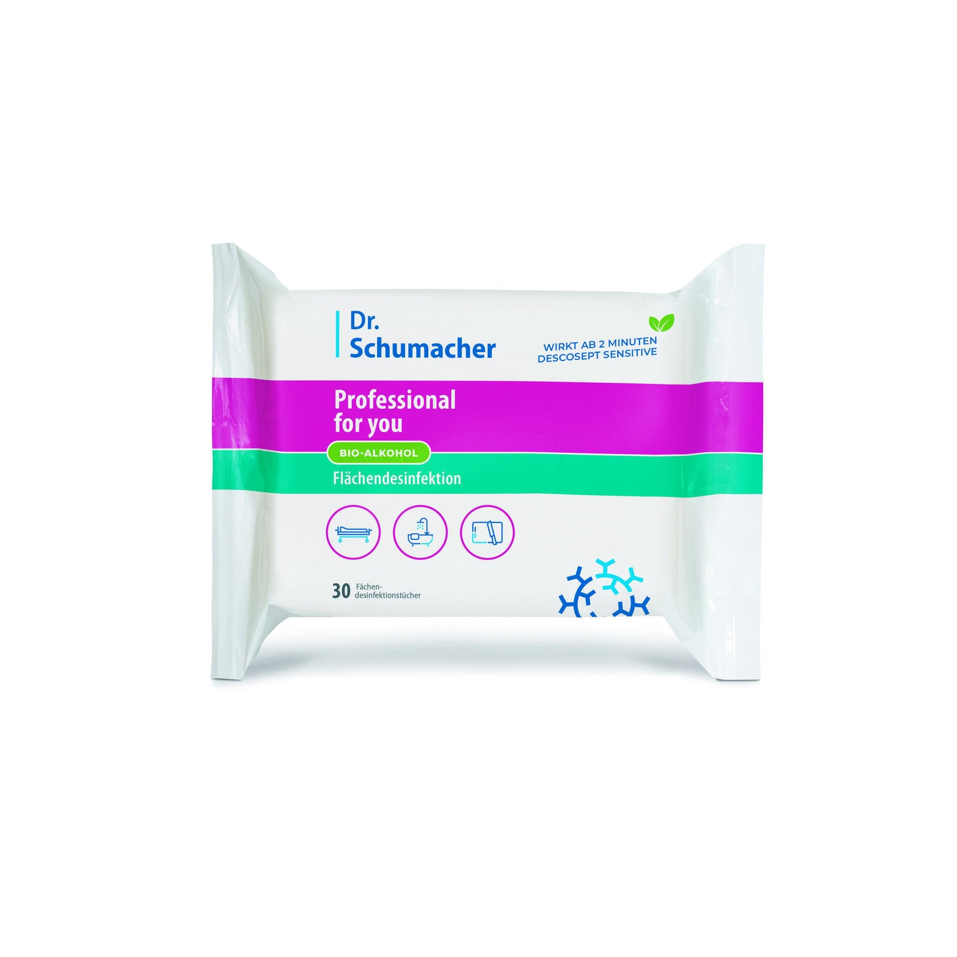 Bezeichnung: Dr. Schumacher Desinfektionstücher Professional4you Oberfläche 17 x 20 cm (B x H) nicht alkoholfrei dermatologisch getestet antibakteriell bakterizid, levurozid, tuberkulozid, begrenzt viruzid 9 30 St./Pack.