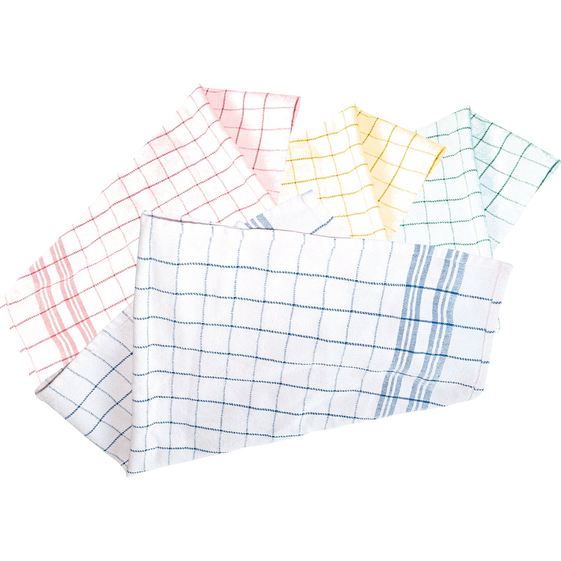 Bezeichnung: HYGOCLEAN Geschirrhandtuch KARO 50 x 70 cm (B x L) 100 % Baumwolle 3 x rot/weiß kariert, 3 x grün/weiß kariert, 2 x gelb/weiß kariert, 2 x blau/weiß kariert 10 St./Pack.