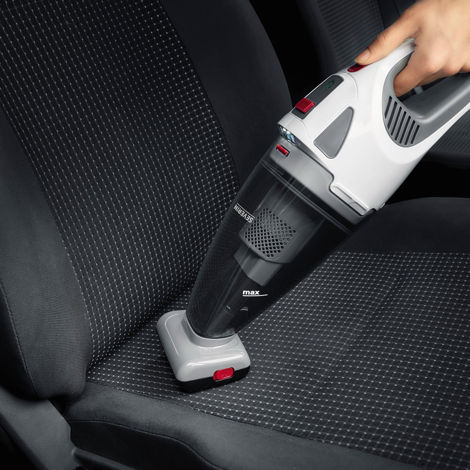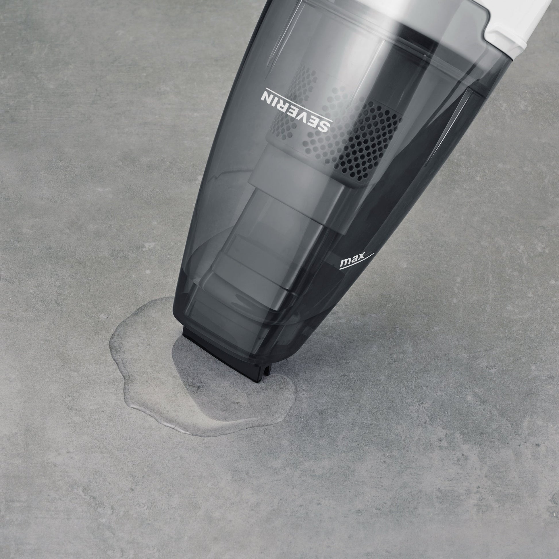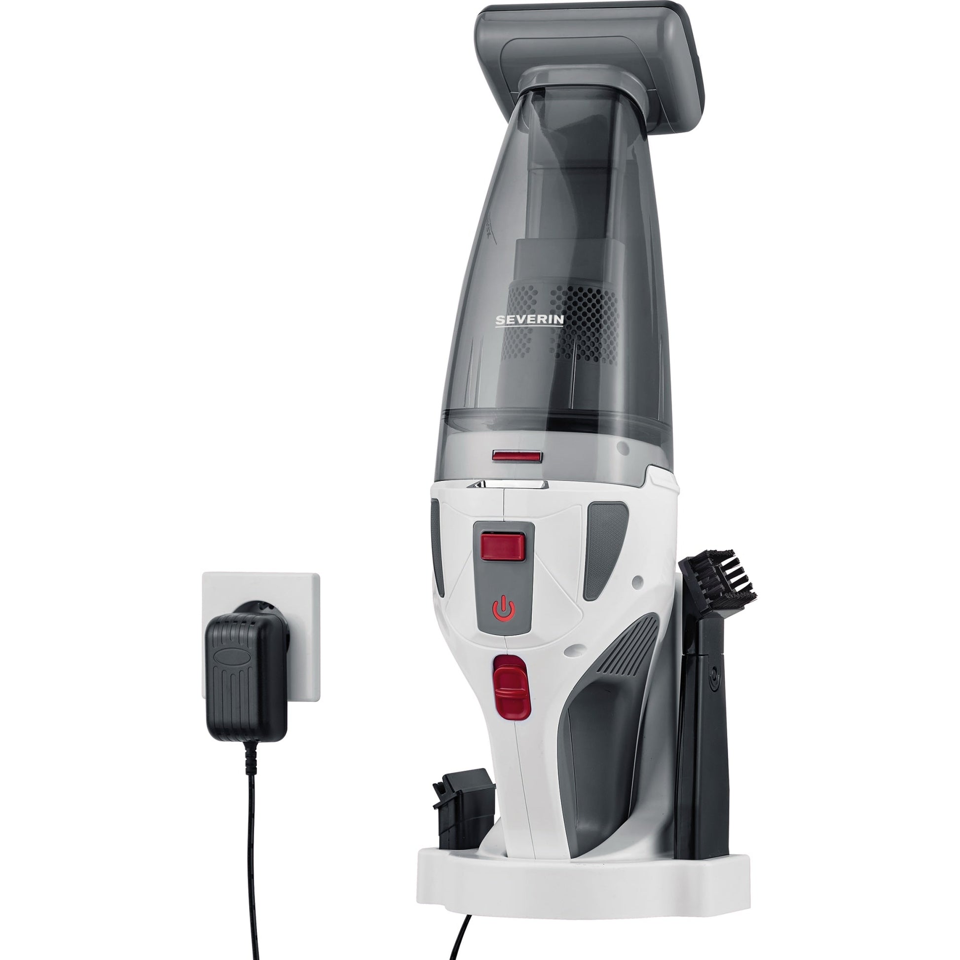 Bezeichnung: SEVERIN Handstaubsauger HV 7146 0,65l inkl. Wandhalterung mit Ladestation, Turbobürste, Fugendüse mit aufsteckbarem Möbel- oder Gummiaufsatz 1,1kg weiß-grau/rot