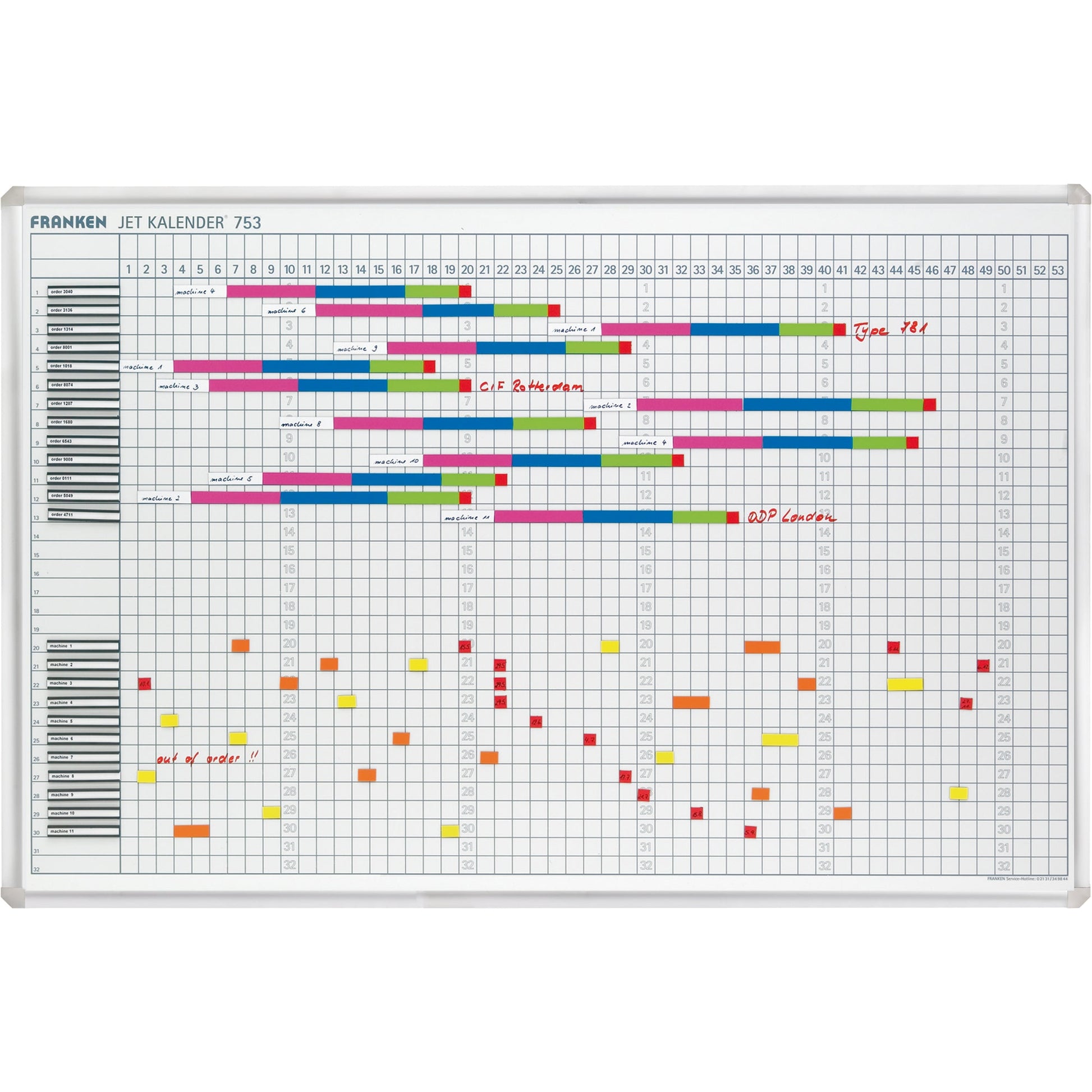 Bezeichnung: FRANKEN Jahresplaner JetKalender 753 90 x 60 cm (B x H) 53 Wochen inkl. 1 Tafelschreiber trocken abwischbar, 1 FineMarker feucht abwischbar, 3 Haftmagnete Aluminium/Kunststoff weiß