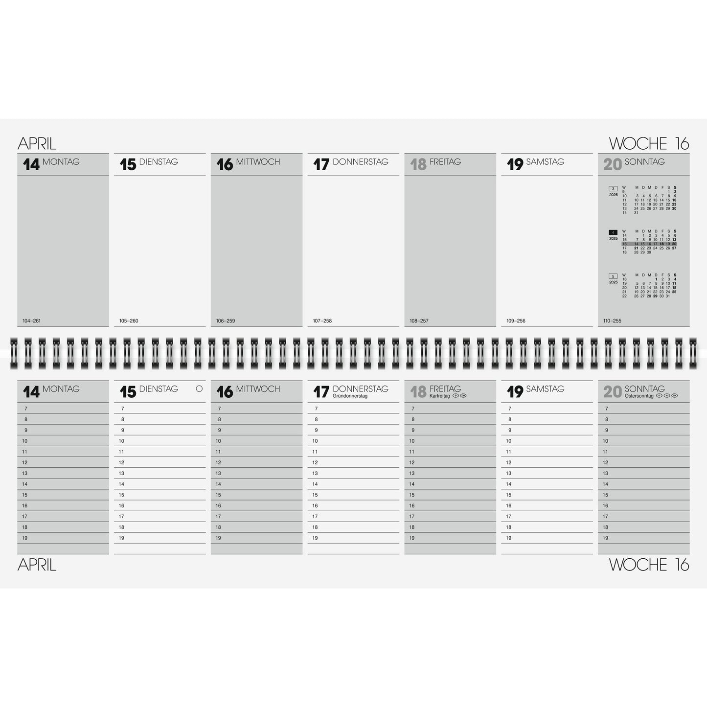 Kalenderaufteilung: 1 Woche/2 Seiten