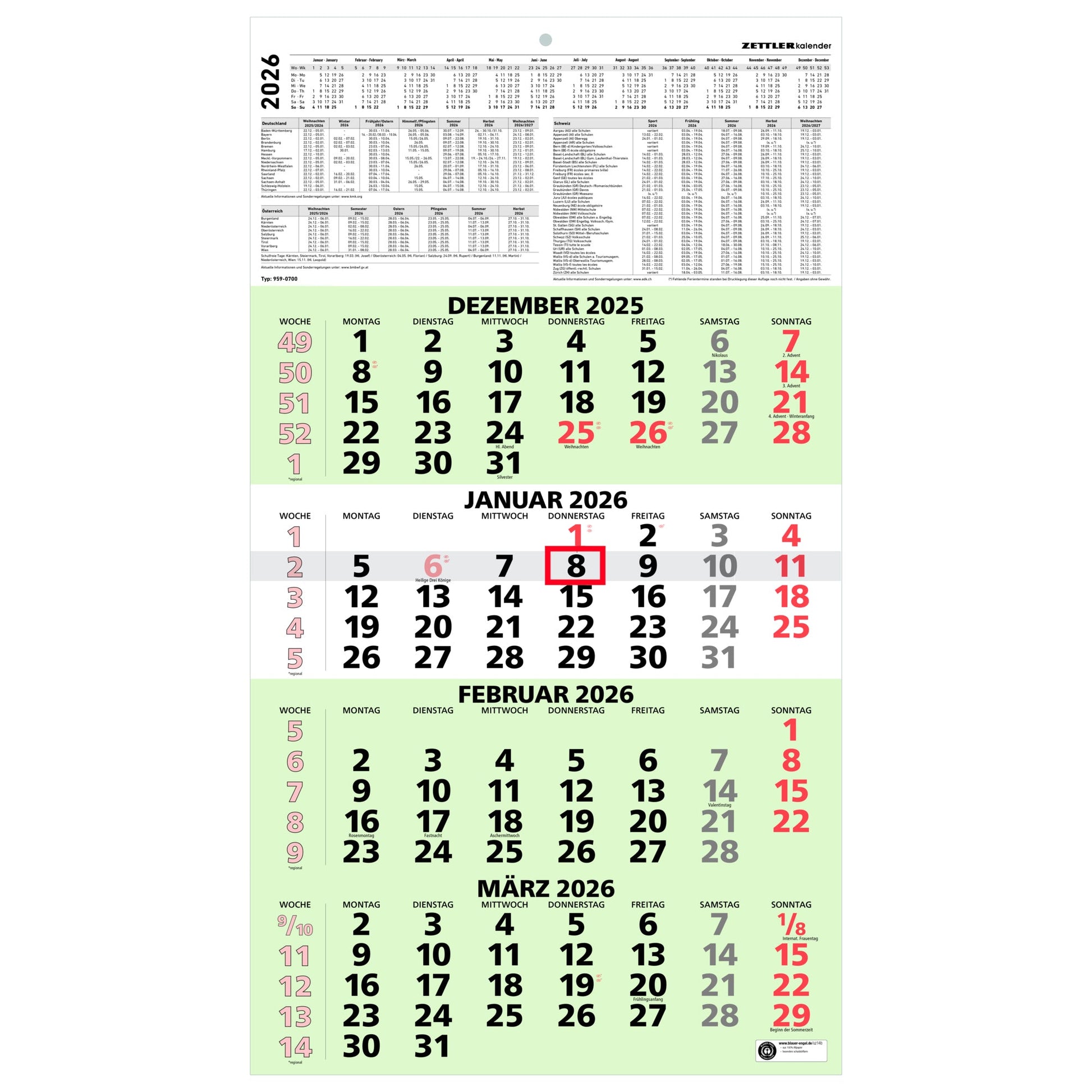 Bezeichnung: ZETTLER Wandkalender 33 x 58,5 cm (B x H) 2026 schwarz/rot/grün