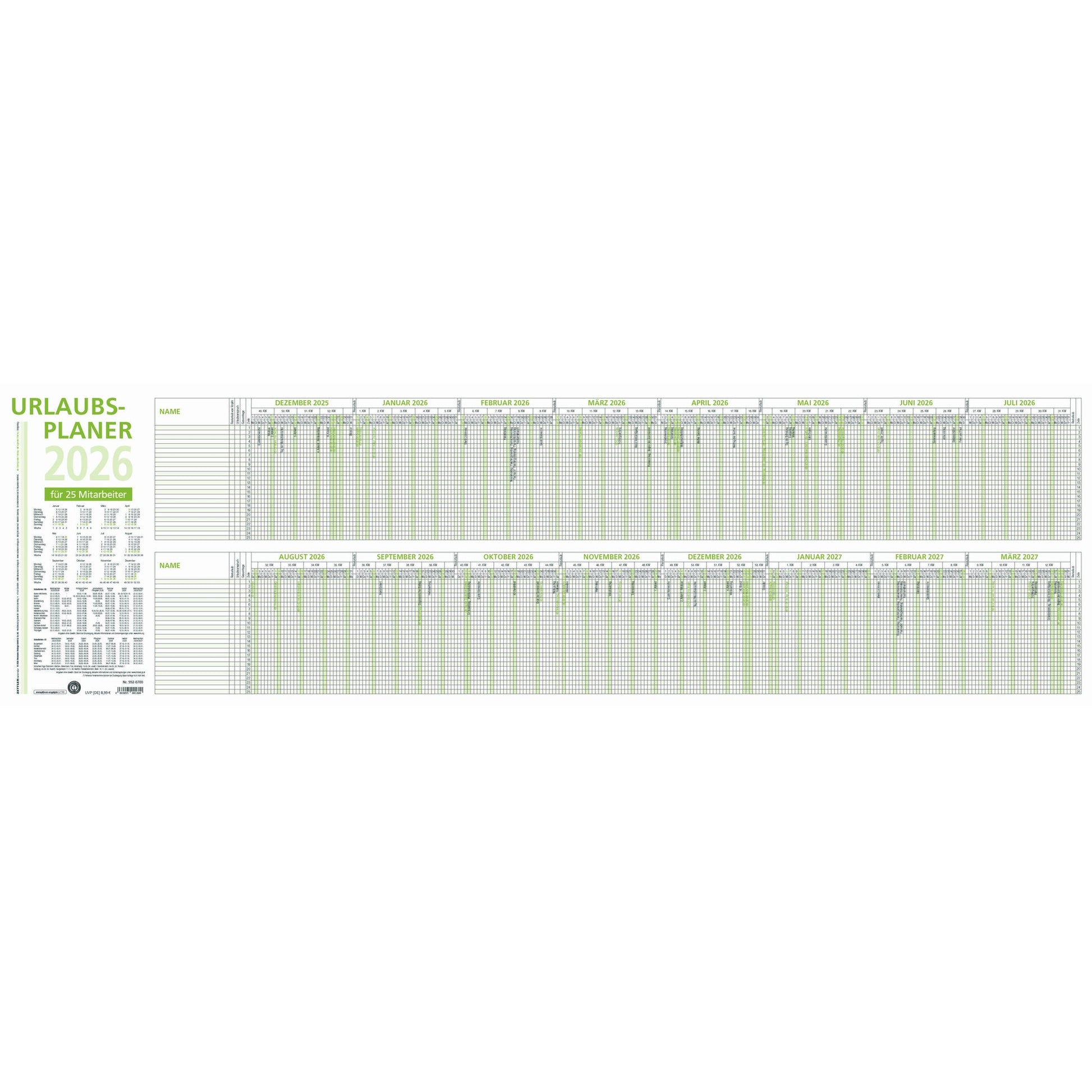 Bezeichnung: ZETTLER Urlaubsübersicht 2026 100 x 29,7 cm (B x H) Papier, 100 % recycelt schwarz/grün