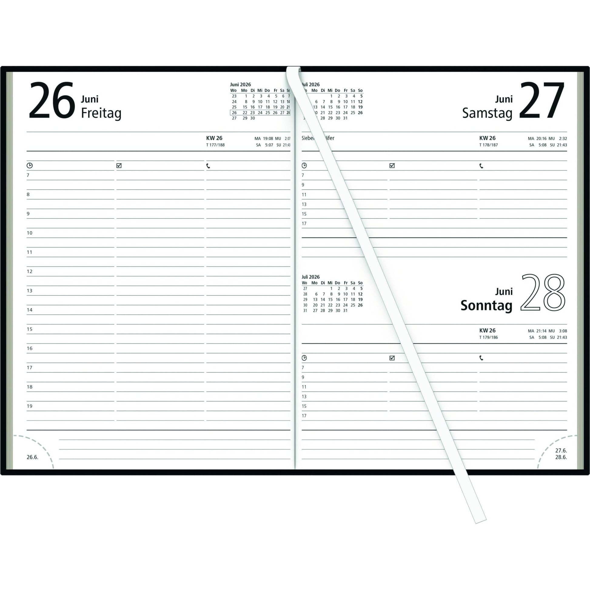 Bezeichnung: ZETTLER Buchkalender 2026 14,5 x 21 cm (B x H) 1 Tag/1 Seite, Sa/So 1 Seite Kunststoff, wattiert schwarz
