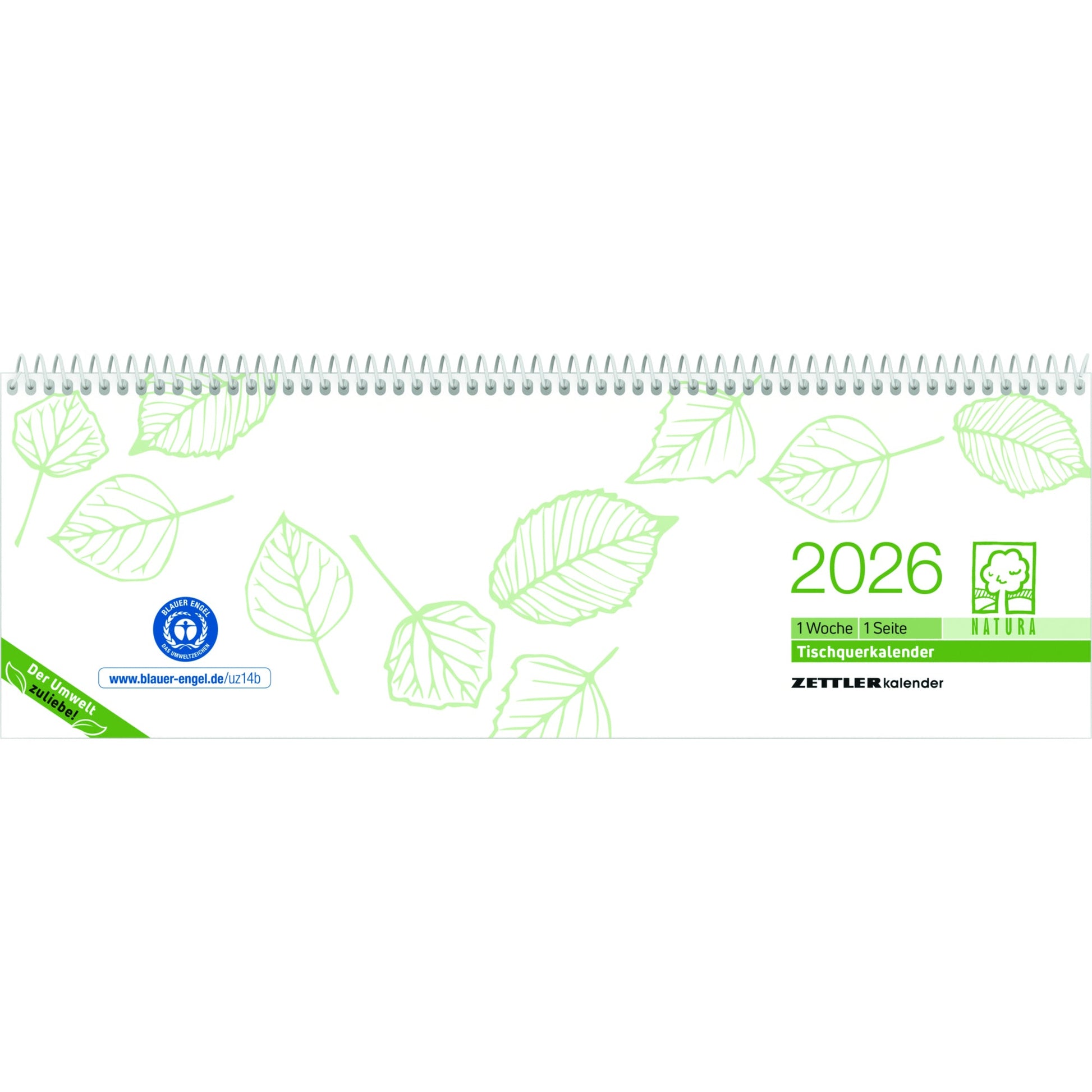 Bezeichnung: ZETTLER Querkalender 2026 1 Woche/1 Seite Karton, 100 % recycelt grau/grün