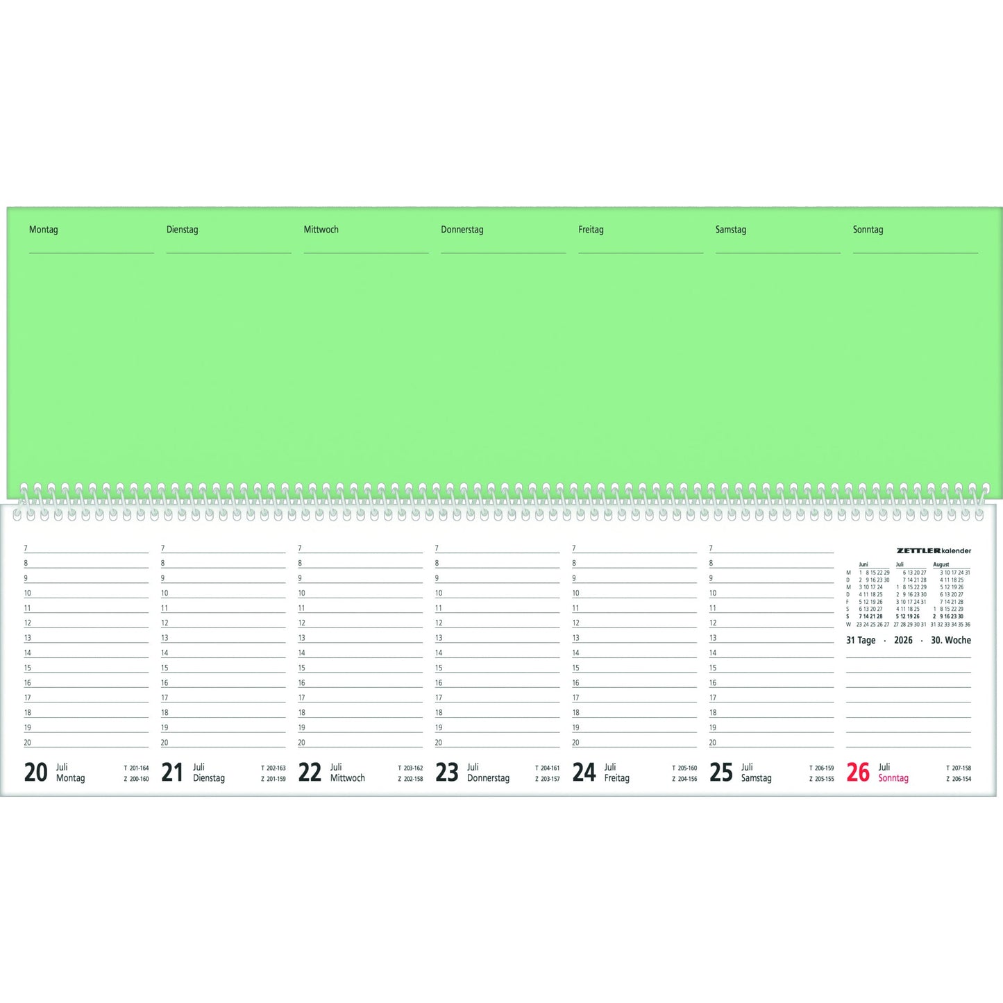 Bezeichnung: ZETTLER Querkalender 2026 1 Woche/2 Seiten Karton grün