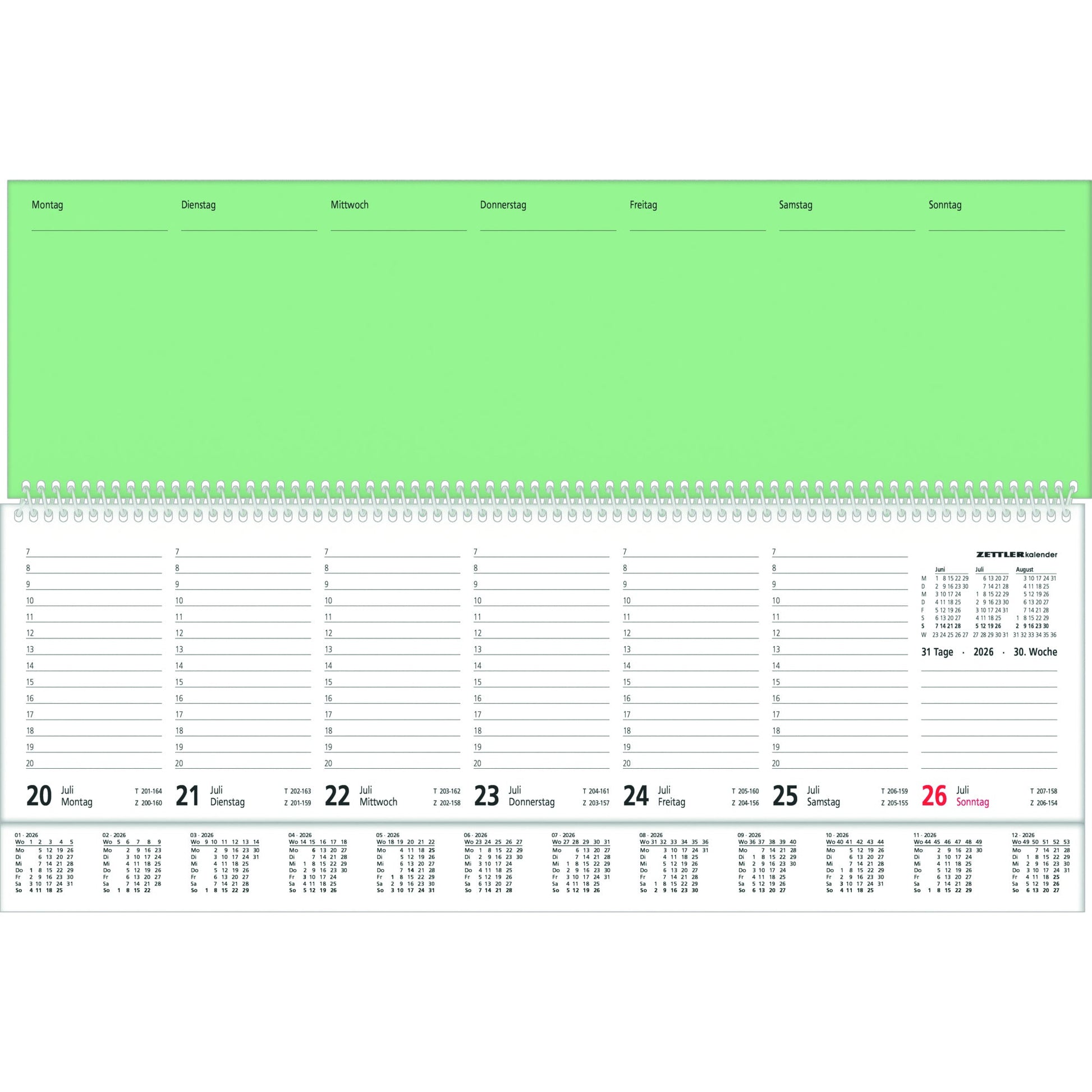 Bezeichnung: ZETTLER Querkalender 2026 1 Woche/2 Seiten Karton grün
