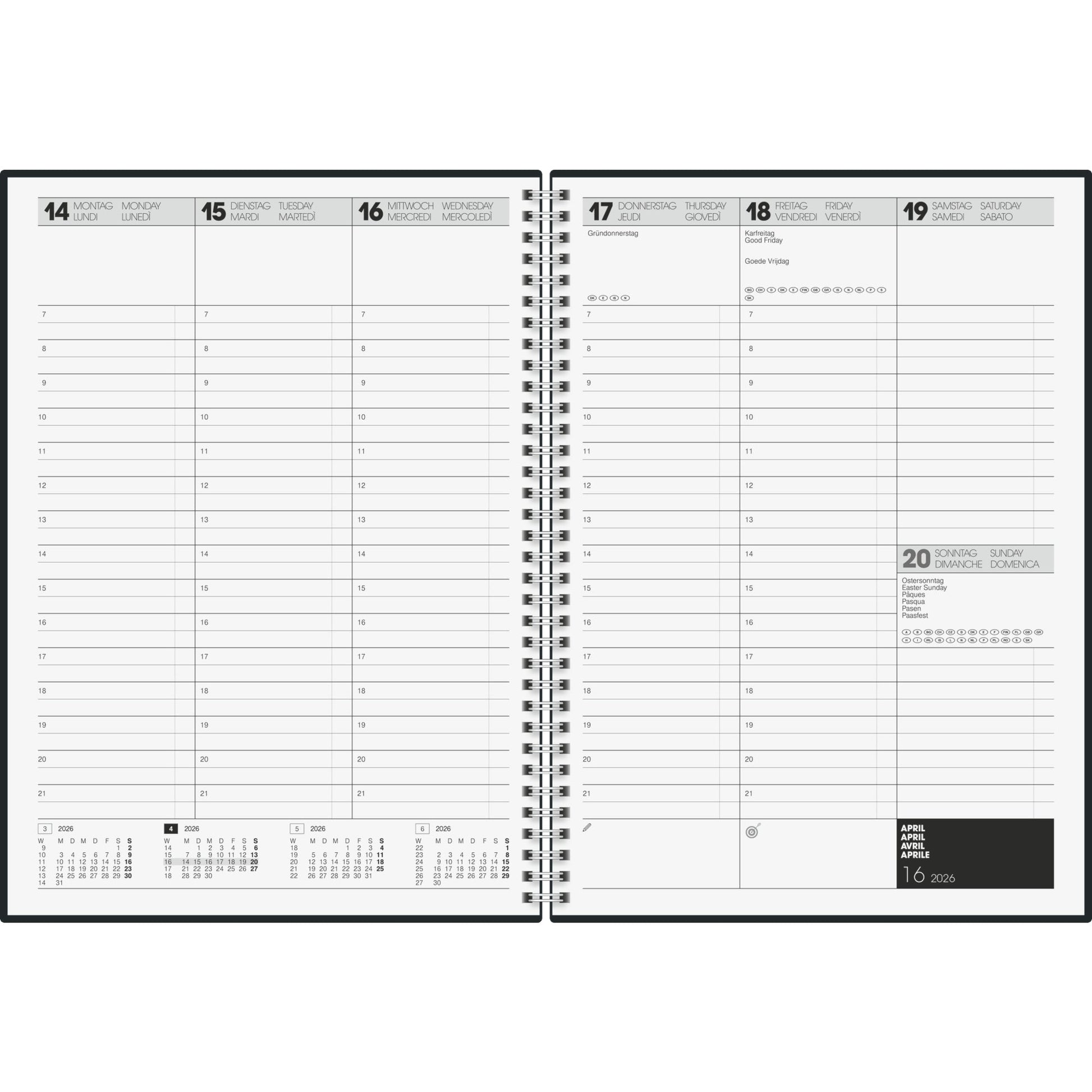 Kalenderaufteilung: 1 Woche/2 Seiten