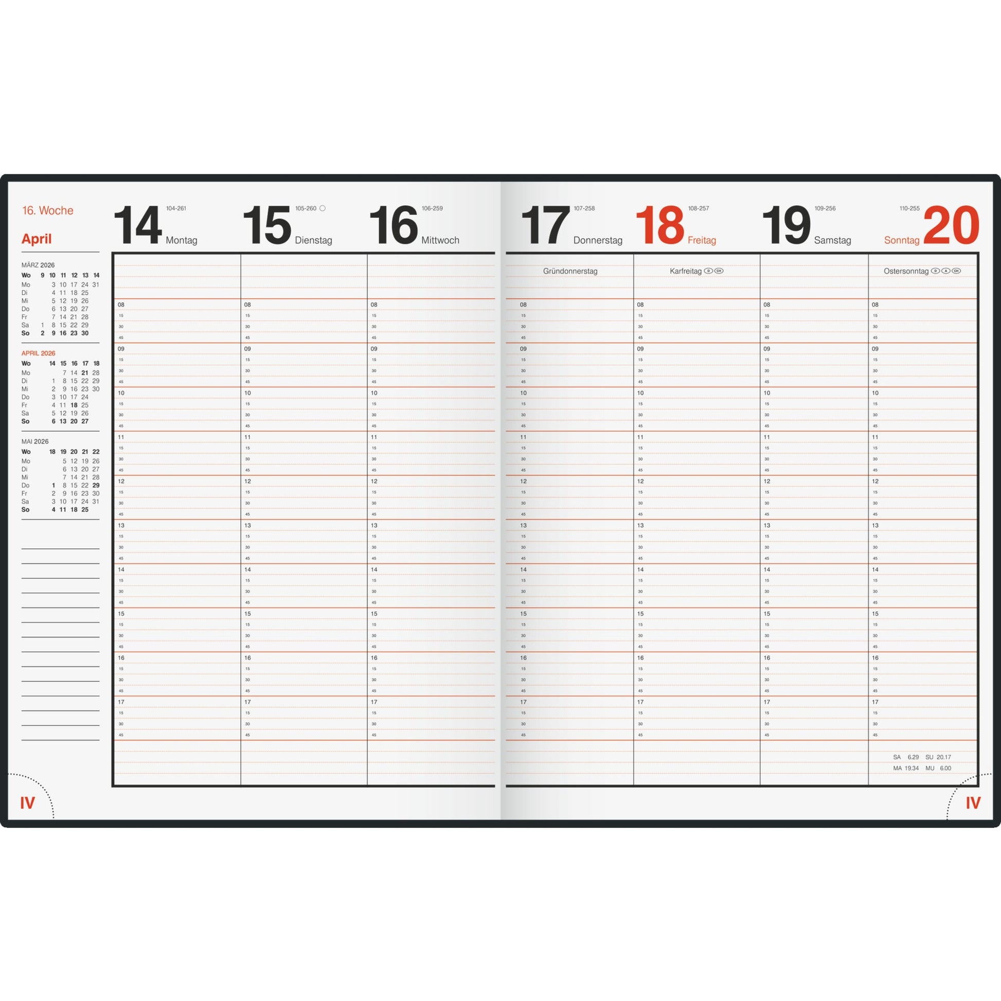 Bezeichnung: rido/idé Buchkalender magnum 2026 18,3 x 24 cm (B x H) 1 Woche/2 Seiten Schaumfolie schwarz