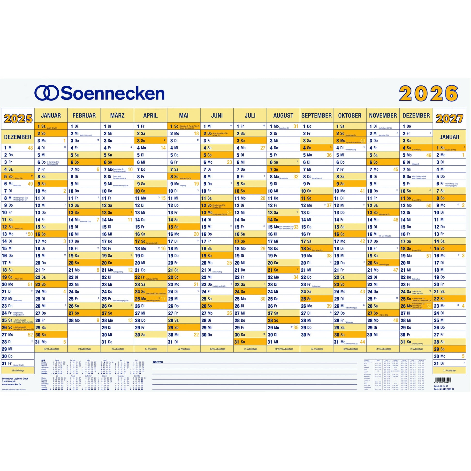 Bezeichnung: Soennecken Plakatkalender 2026 100 x 70 cm (B x H) 14 Monate/1 Seite Karton