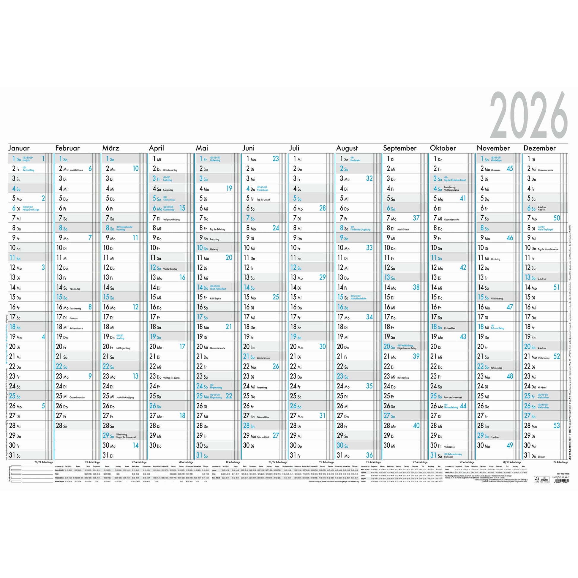 Bezeichnung: ZETTLER Plakatkalender 2026 100 x 70 cm (B x H) 12 Monate/1 Seite Karton 5 St./Pack.