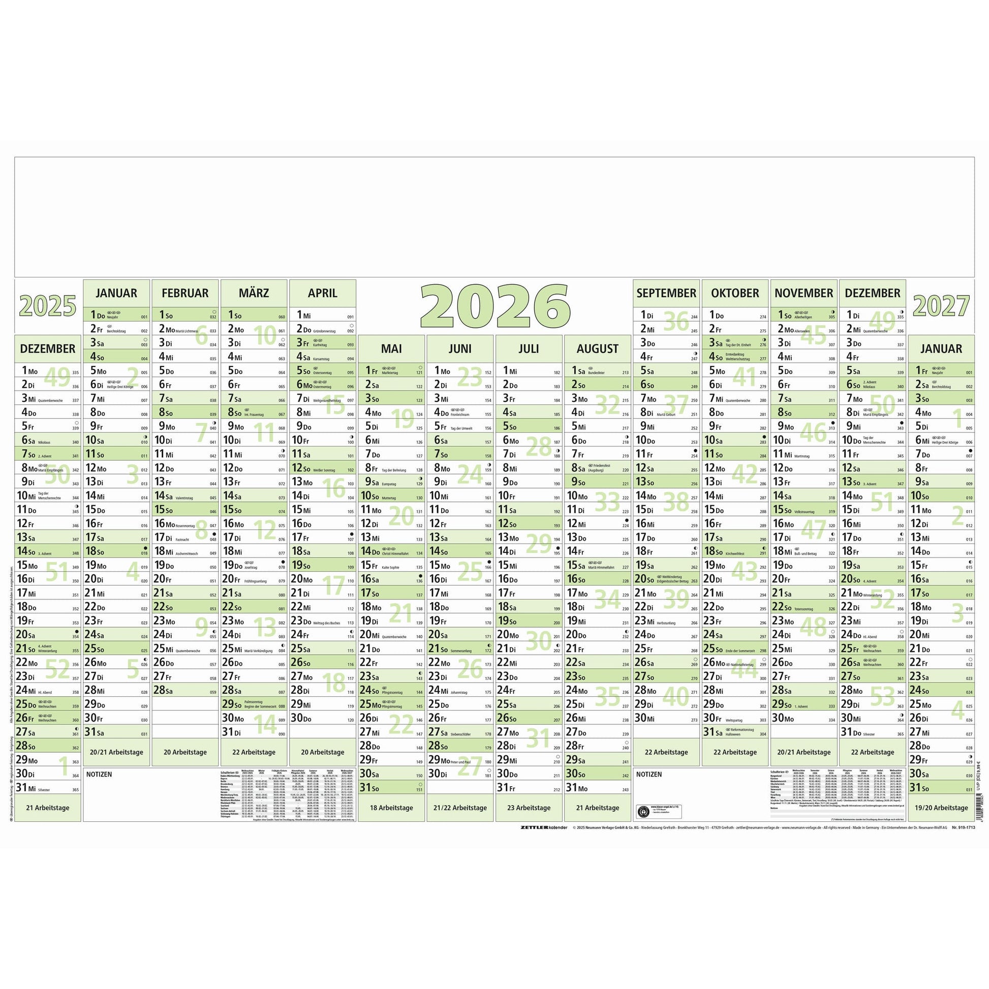 Bezeichnung: ZETTLER Plakatkalender Natura 2026 88 x 63 cm (B x H) 14 Monate/1 Seite Karton, 100 % recycelt 5 St./Pack.