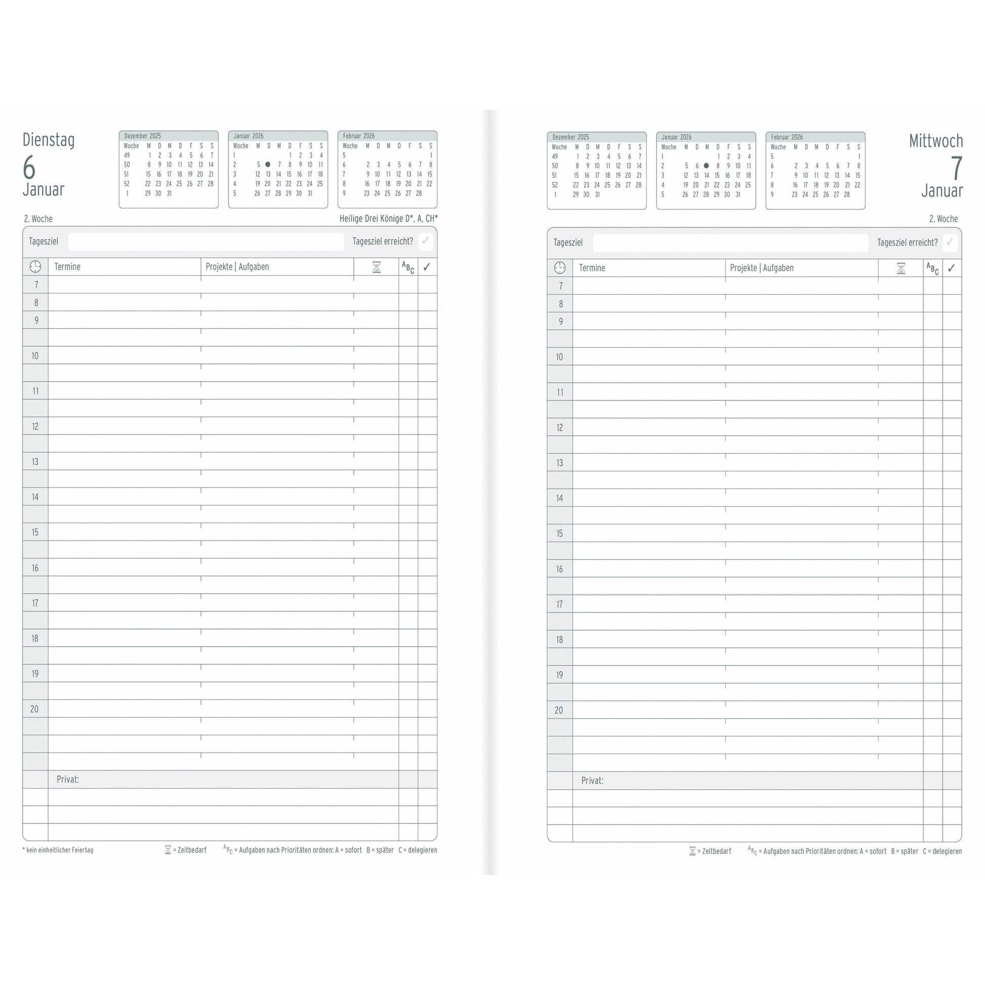 Bezeichnung: Chronoplan Buchkalender Black Edition 2026 DIN A5 1 Tag/1 Seite Karton, folienlaminiert schwarz