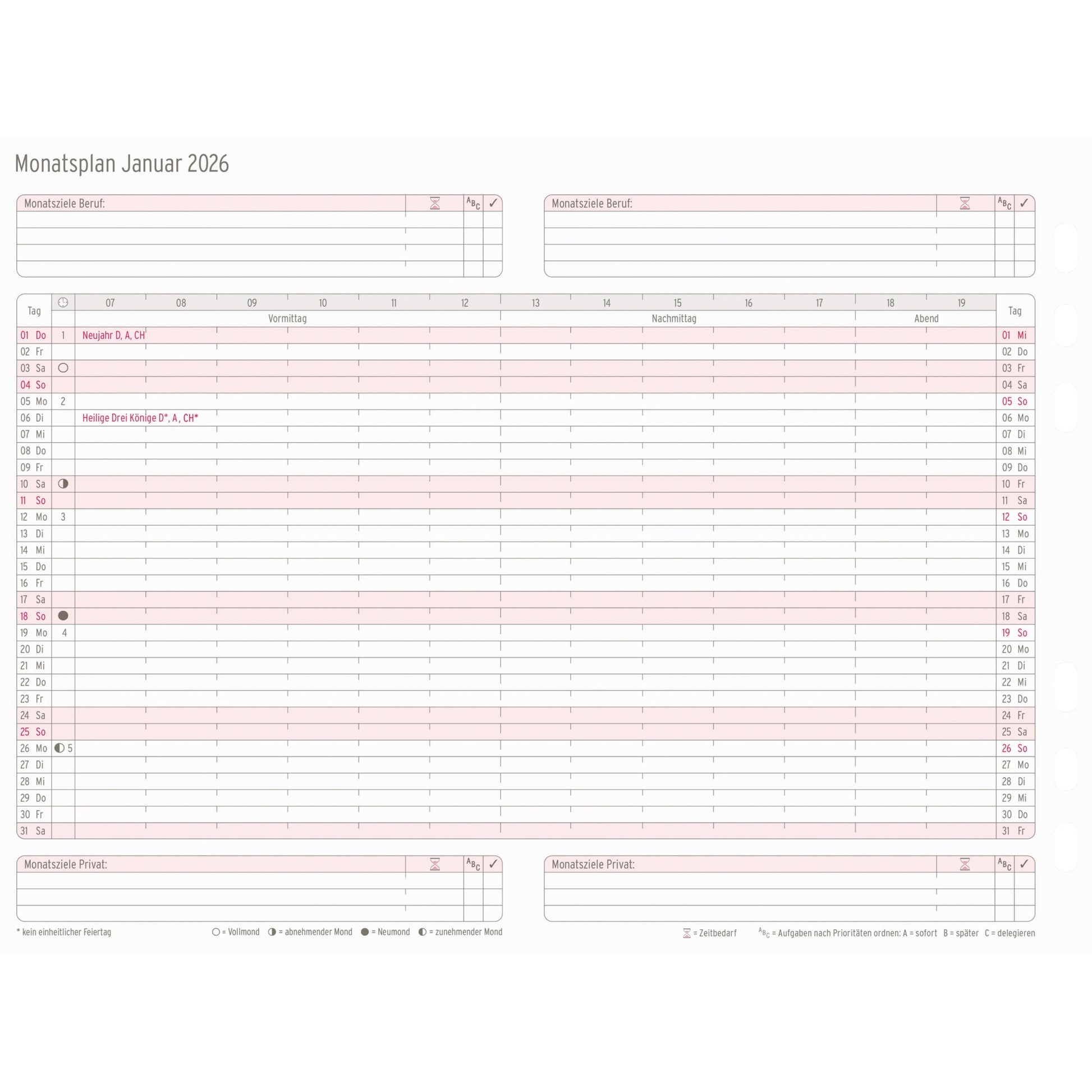 Bezeichnung: Chronoplan Einlage Kalender 2026 DIN A5 1 Monat/1 Seite Aktivitätenliste für den jeweiligen Monat