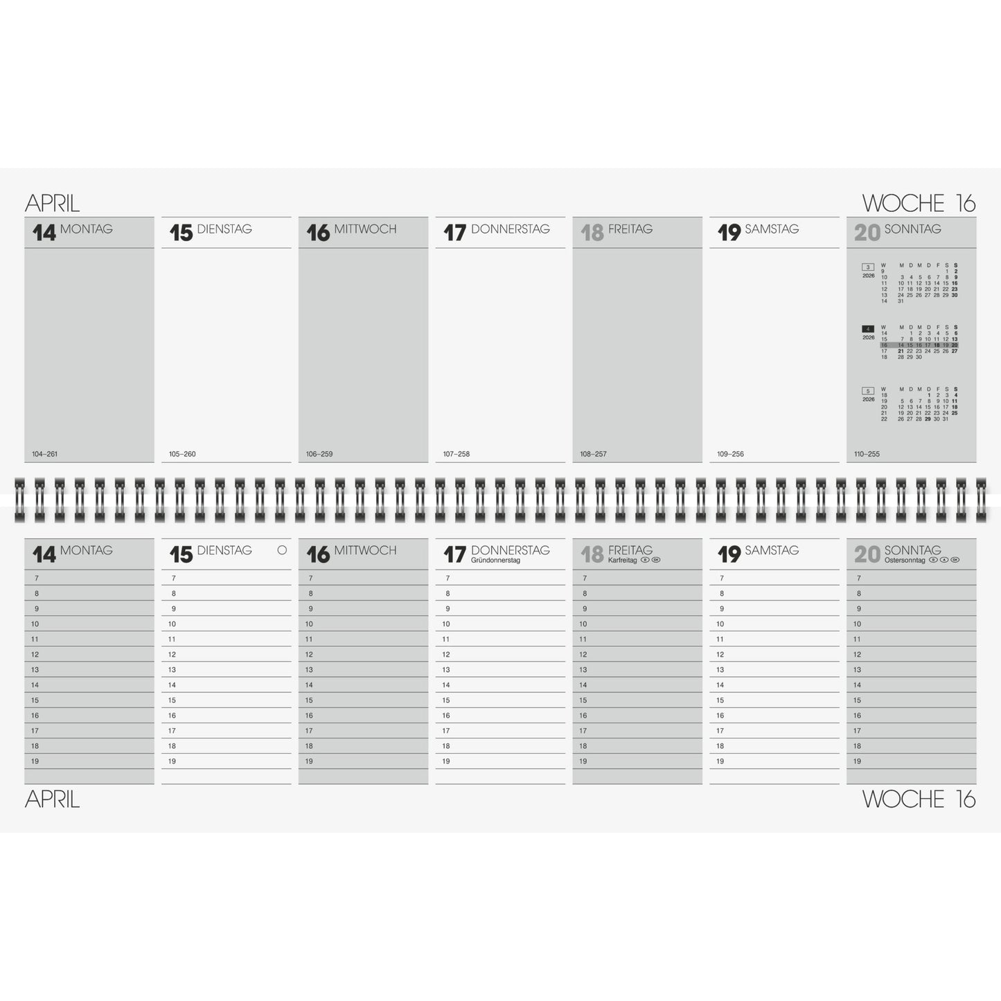 Kalenderaufteilung: 1 Woche/2 Seiten