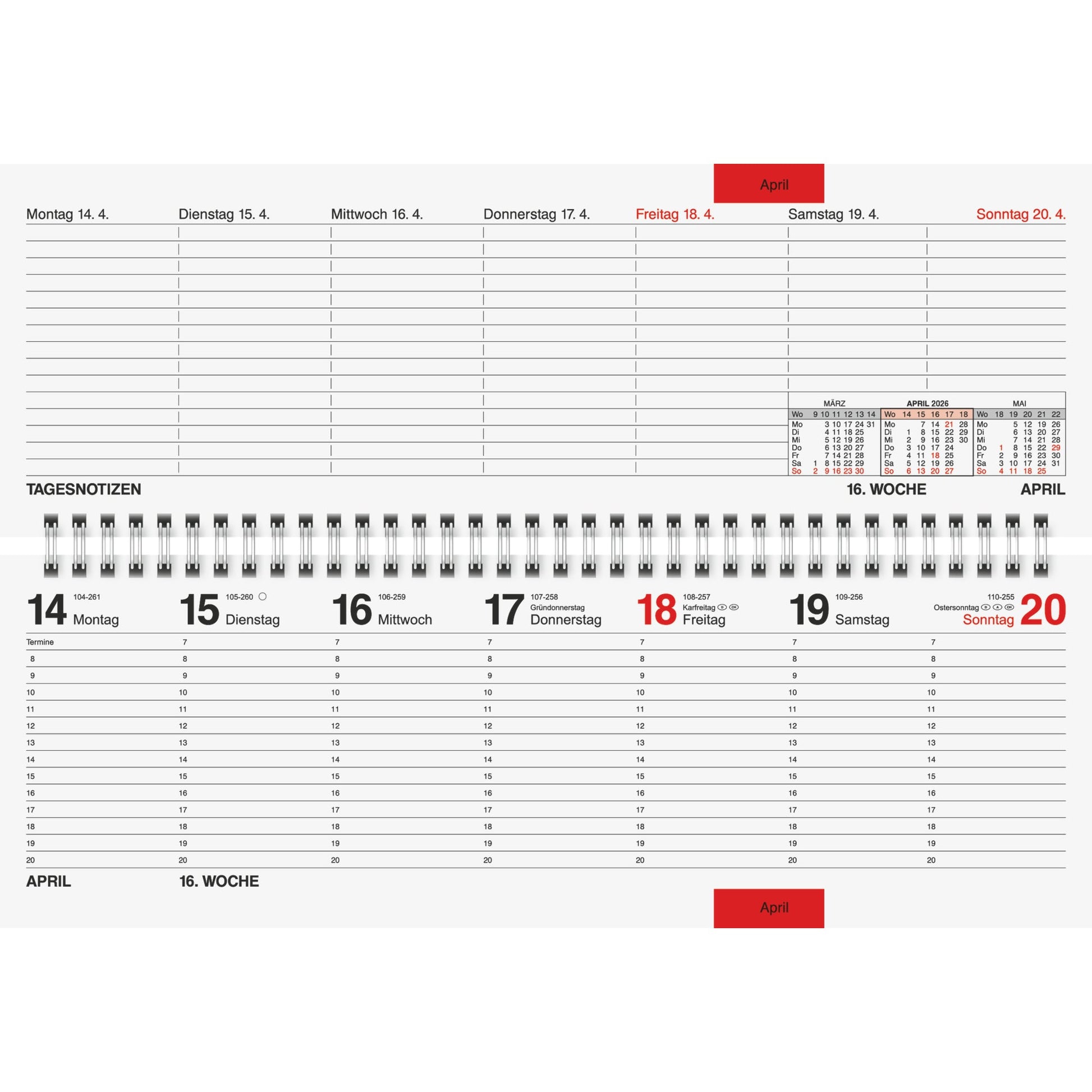 Kalenderaufteilung: 1 Woche/2 Seiten