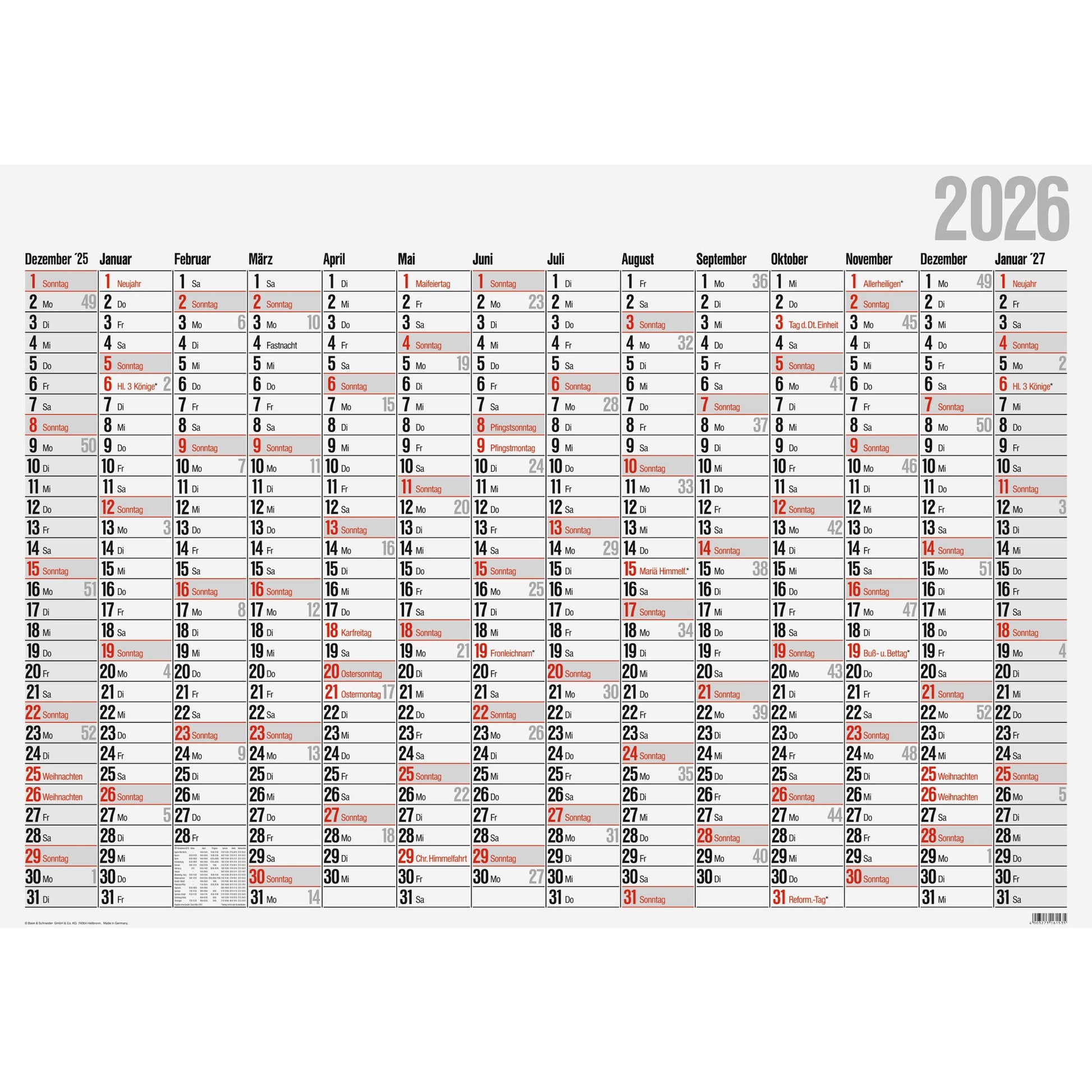 Bezeichnung: Glocken Plakatkalender 2026 98 x 68,5 cm (B x H) 14 Monate/1 Seite Karton