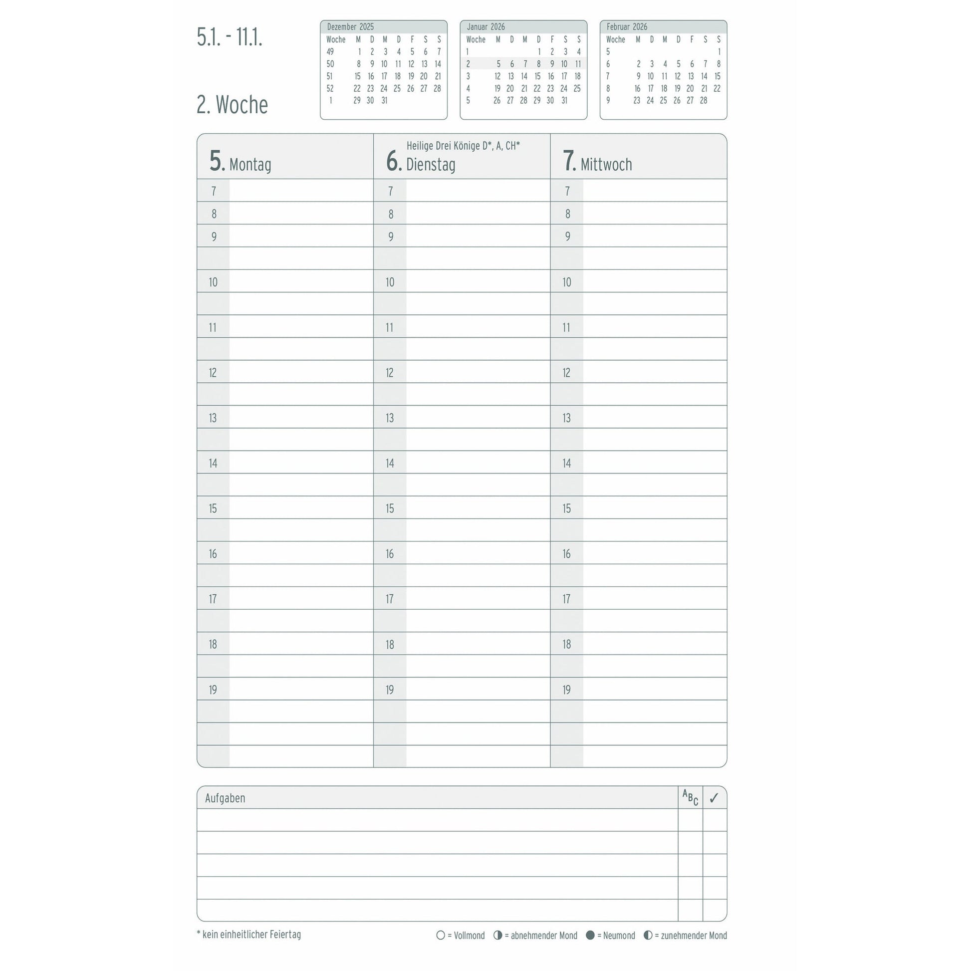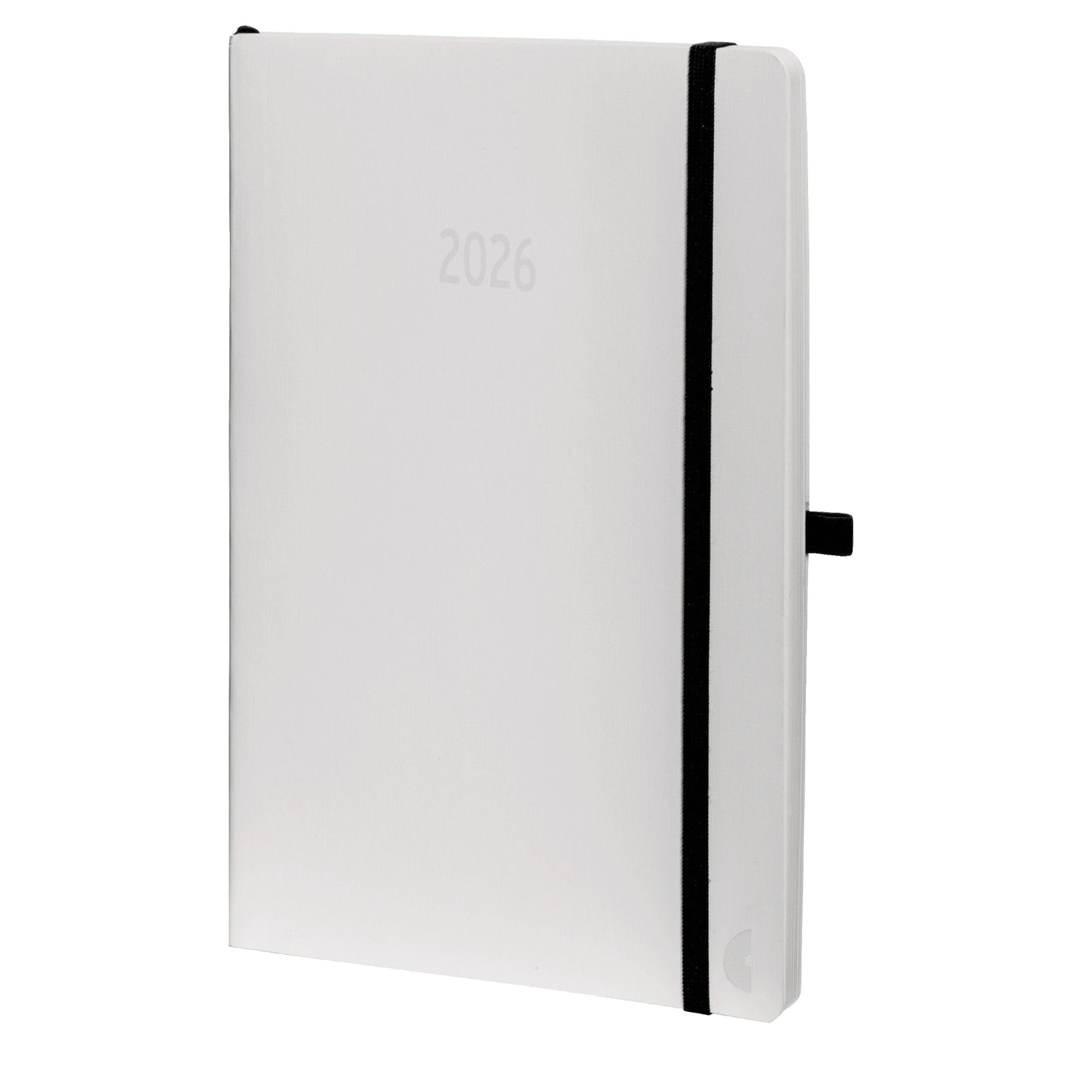 Bezeichnung: Chronoplan Buchkalender White Edition 2026 DIN A5 1 Woche/2 Seiten Karton, folienlaminiert weiß
