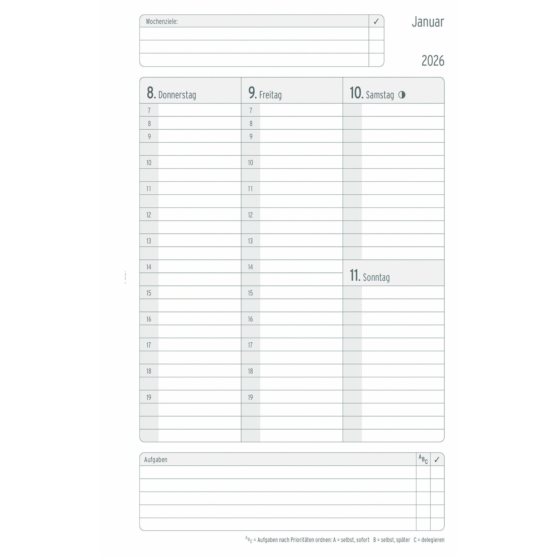 Kalenderaufteilung: 1 Woche/2 Seiten