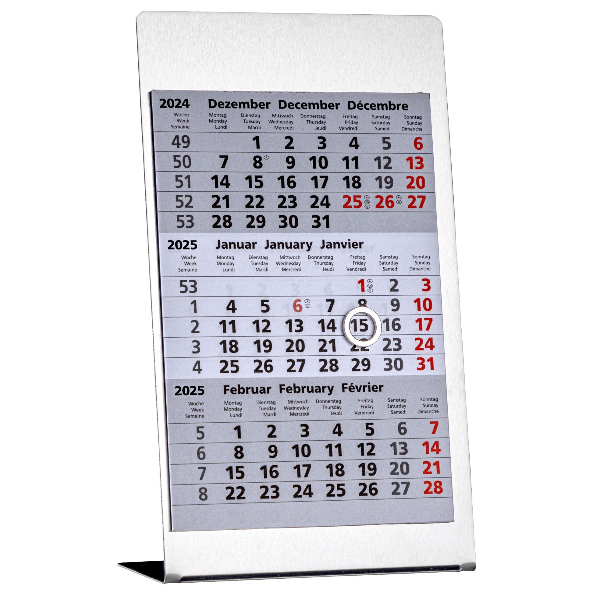 Bezeichnung: GÜSS® Tischkalender 2026 3 sichtbare Monatsblöcke silber