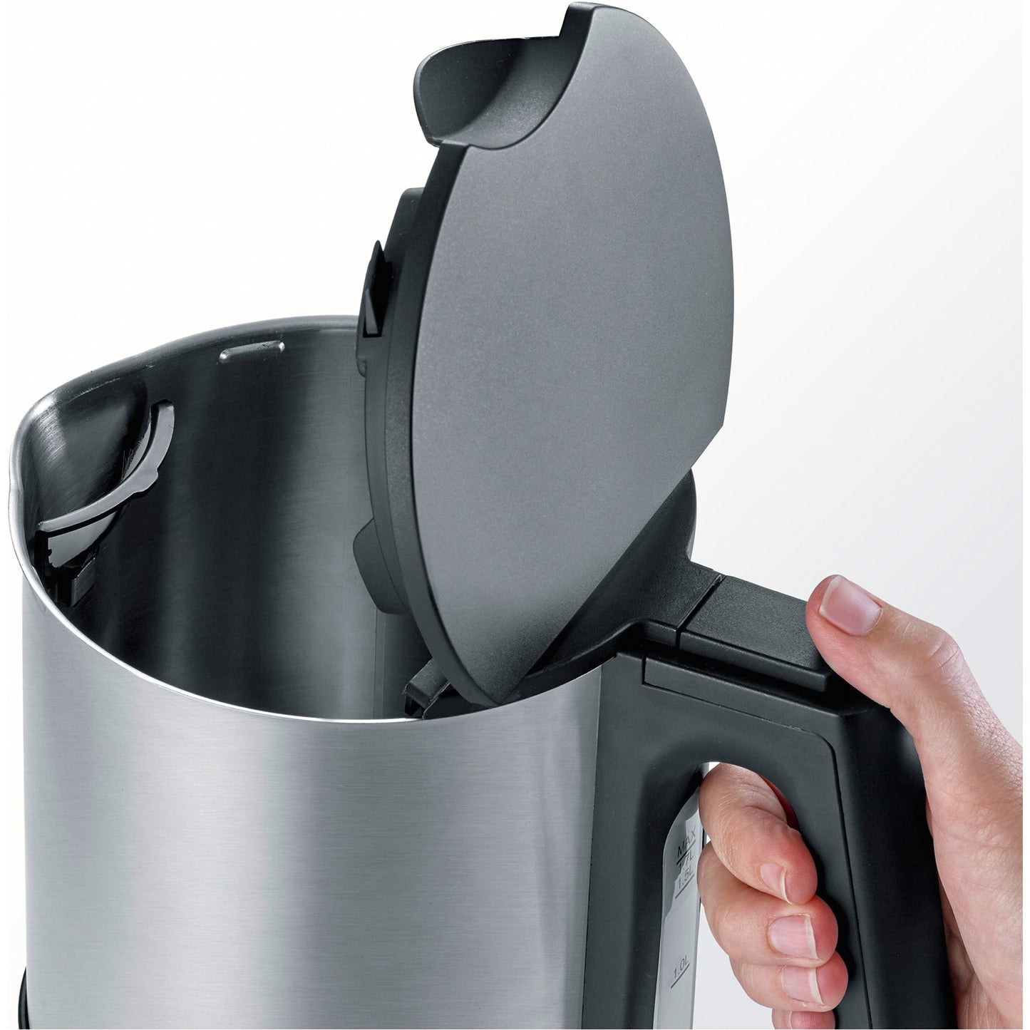 Bezeichnung: SEVERIN Wasserkocher WK 3409 1,7l Edelstahl gebürstet edelstahl/schwarz
