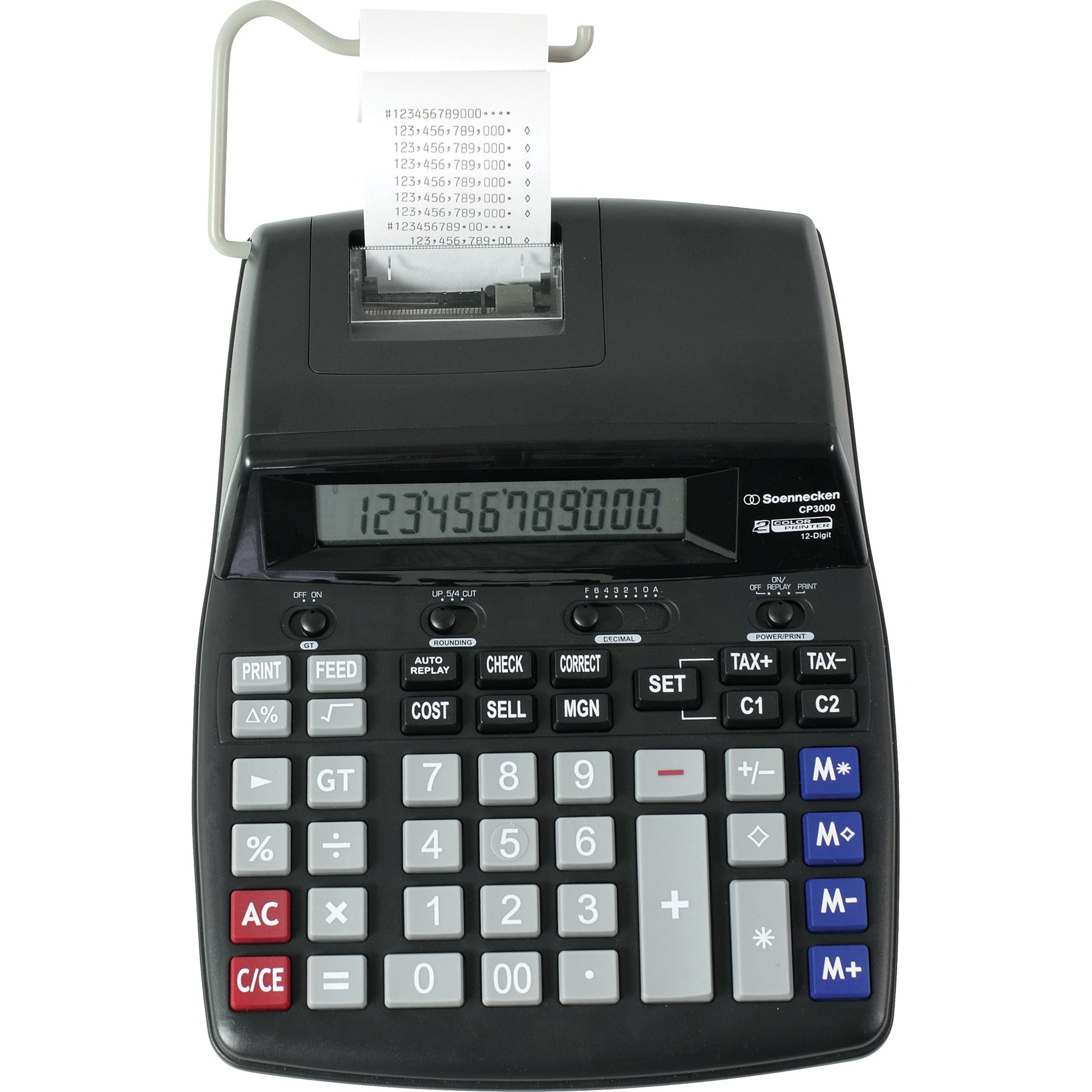 Bezeichnung: Soennecken Tischrechner CP3000 schwarz/rot 210 x 85 x 355 mm (B x H x T) Netzbetrieb schwarz