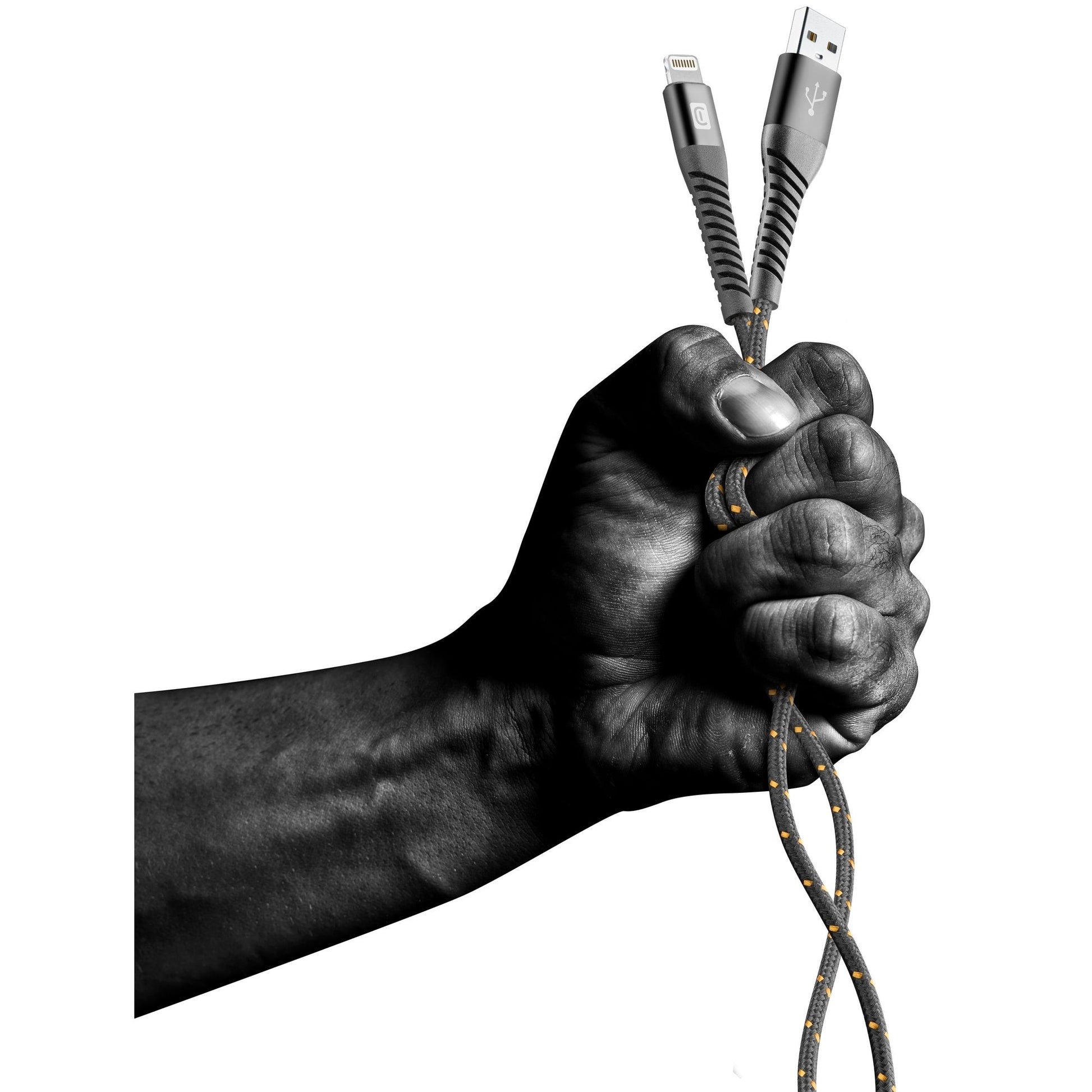 schwarzSTRONG CABLE aus der TETRAFORCE-Serie ist das robusteste Kabel im Cellularline-Portfolio. Die um 30 % verlängerte Kabelführung ist mit Snake-Technologie ausgestattet und ultraflexibel sowie superrobust auch bei höchster Belastung. Sie schützt den empfindlichsten Teil des Kabels und erlaubt, das Kabel bis zu 10.000-mal zu biegen - zehnmal so häufig wie bei herkömmlichen Kabeln. Die für Strong Cable verwendeten Materialien wurden für höchste Langlebigkeit entwickelt. Steckverbindungen aus Metall machen unempfindlich gegen Stöße und Druck, Kabelabdeckung mit doppeltem Geflecht aus verstärktem Stoff für extreme Flexibilität und Robustheit, Gehäuse aus Aluminiumlegierung, innerer Kern aus hochreinem Kupfer und Aramidfasern von DuPont™ Kevlar®.