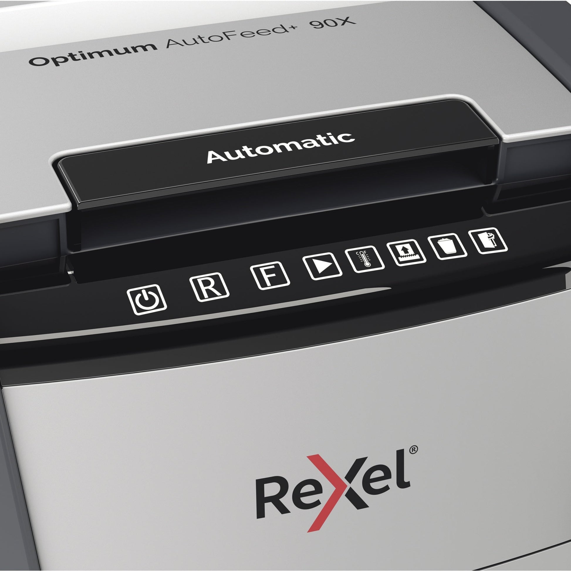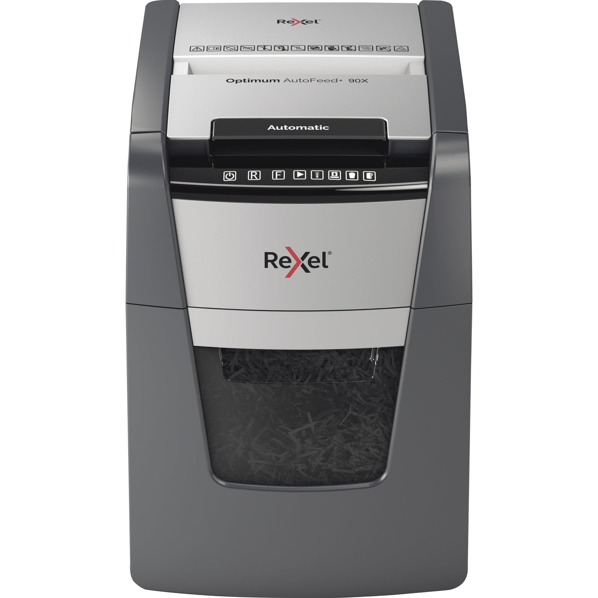Bezeichnung: Rexel® Aktenvernichter Optimum AutoFeed+ 90X P-4 Papier, Heftklammern, Büroklammern, Kreditkarten Partikelschnitt 9 Bl. manuell, 99 Bl. automatisch schwarz