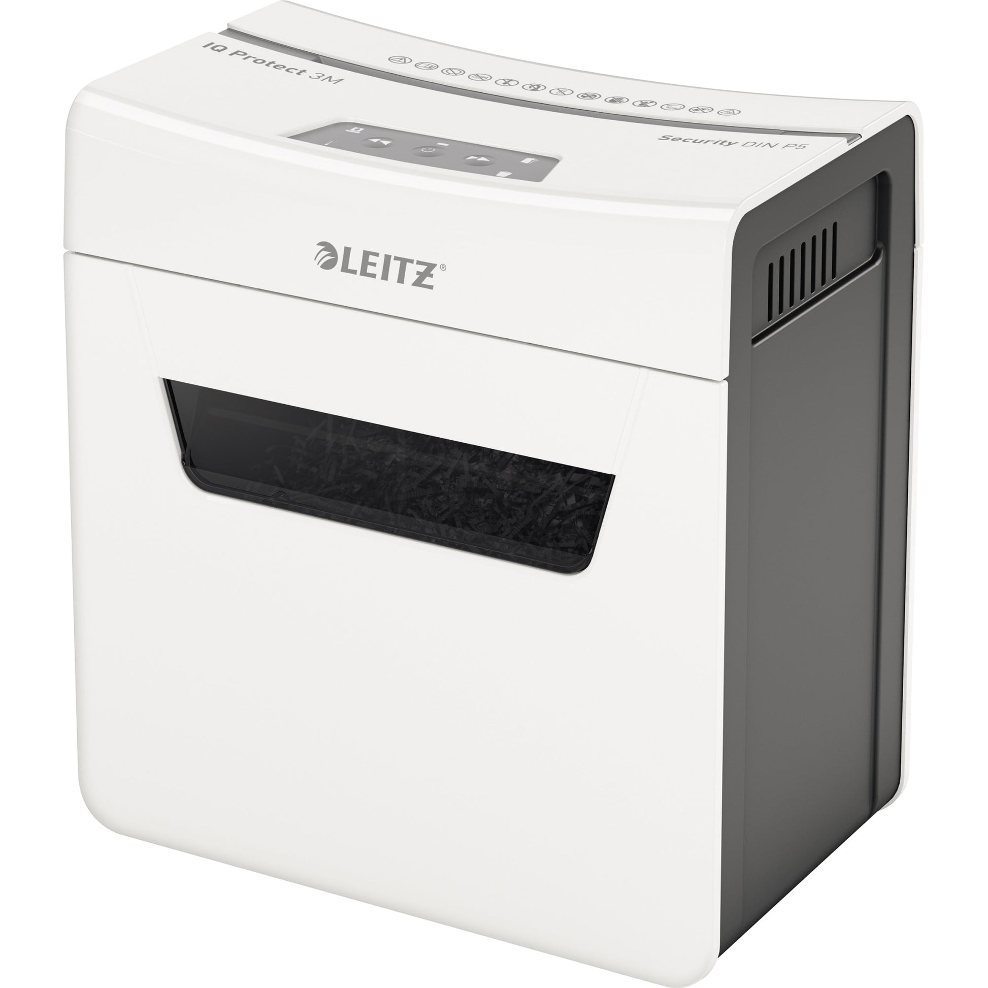 Bezeichnung: Leitz Aktenvernichter IQ 3M Protect Premium P-5 Papier, Heftklammern, Büroklammern Partikelschnitt weiß