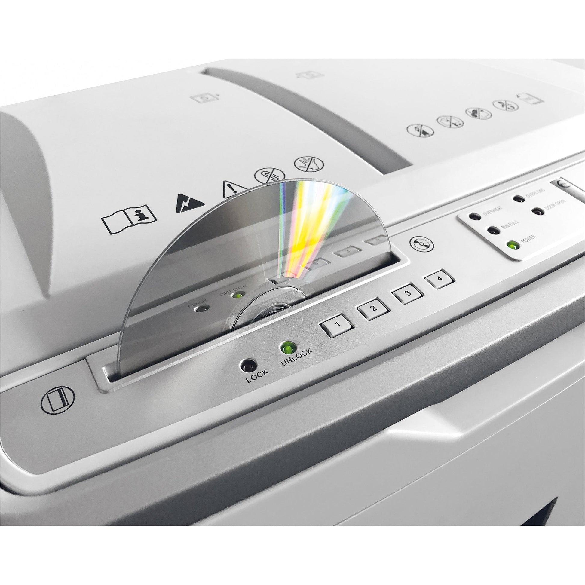 Innovatives Auto-Feed-System zur automatischen Zuführung von Papierstapeln bis zu 350 Blatt. Während des schredderns kann der unbefugte Zugriff auf das noch zu vernichtende Schnittgut über einen frei wählbaren, vierstelligen PIN-Code verhindert werden. Übersichtliches Bedienfeld mit LED-Leuchtenanzeigen für den Betriebsstatus und Drucktasten für Vorwärtslauf/Stopp/Rückwärtslauf. Leiser, kraftvoller und energieeffizienter Motor. Sicherer Einsatz des Gerätes durch umfangreiches Sicherheitspaket. Herausnehmbarer Schnittgutbehälter für Papier. Separater Schnittgutbehälter für CDs/DVDs oder Kreditkarten.