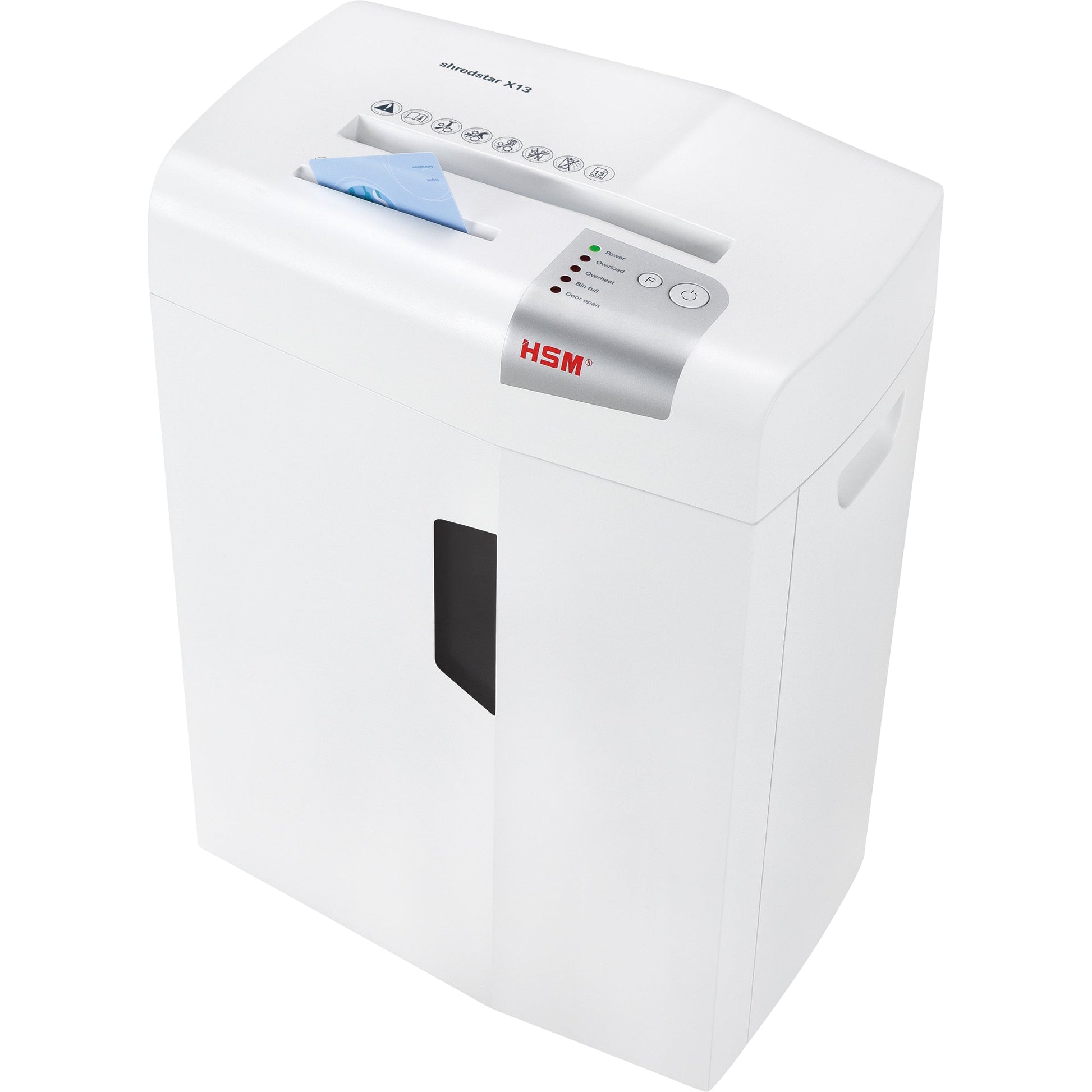 Bezeichnung: HSM® Aktenvernichter shredstar X13 P-4 Papier, Heftklammern, Büroklammern, Kreditkarten, CDs/DVDs Partikelschnitt weiß/silber