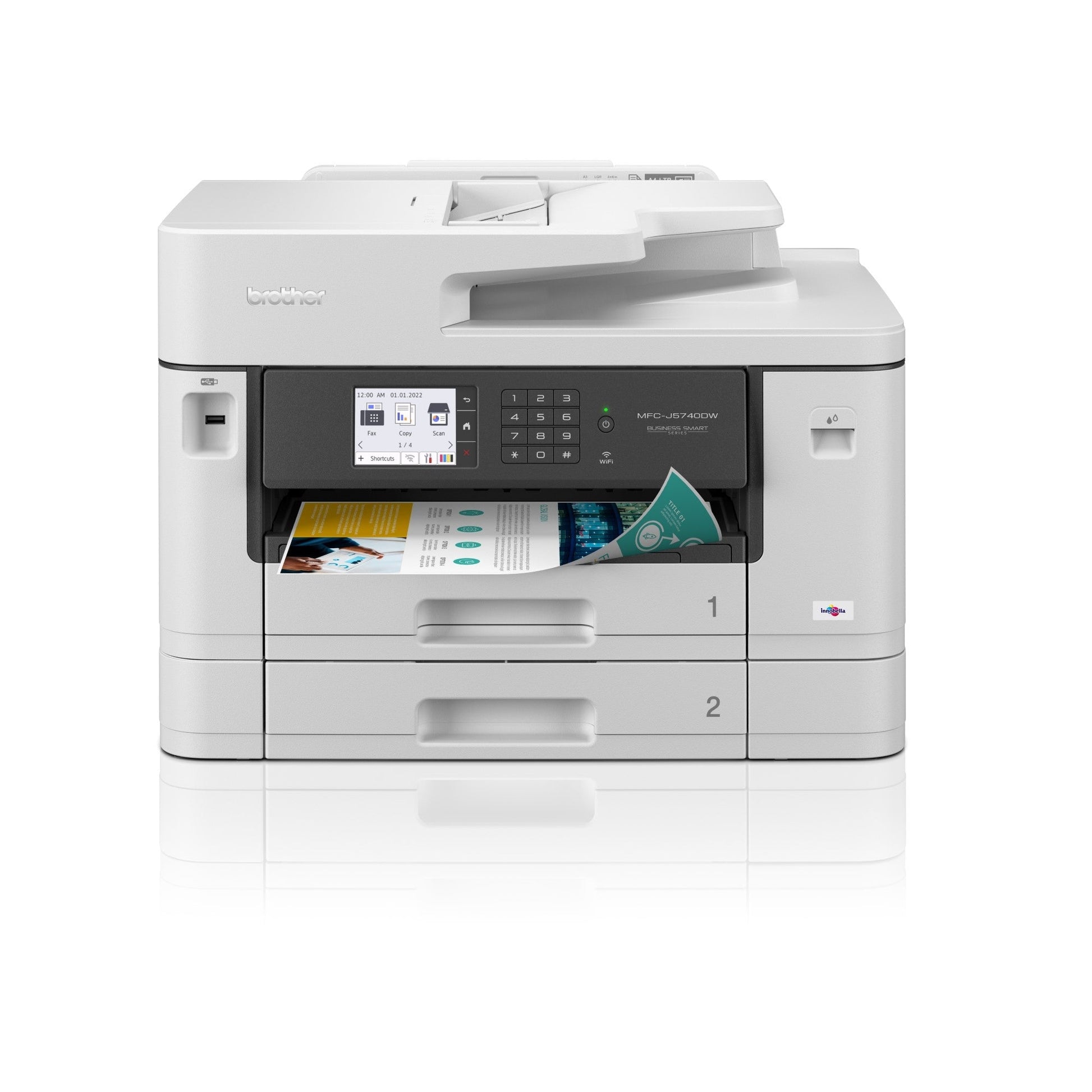 Das 4-in-1 Tinten-Multifunktionsgerät MFC-J5740DW mit DIN A4 Vollduplex-Funktion erfüllt die Anforderungen anspruchsvoller kleiner Büros und Arbeitsgruppen. Dank DIN A3 Druckfunktion können Sie problemlos eine Vielzahl von A3- und A4-Farbdokumenten erstellen. Genießen Sie dabei hochwertige Qualität, schnelle Druckgeschwindigkeiten und niedrige Betriebskosten. Scannen, kopieren und faxen Sie Ihre Dokumente automatisch beidseitig (bis DIN A4), mithilfe des Duplex-Vorlageneinzugs mit Dual-CIS Scanner. Drucken Sie direkt von Ihrem Arbeitsplatz, einem Besprechungsraum oder Ihrem Mobilgerät aus - dank drahtloser WLAN-Verbindung.