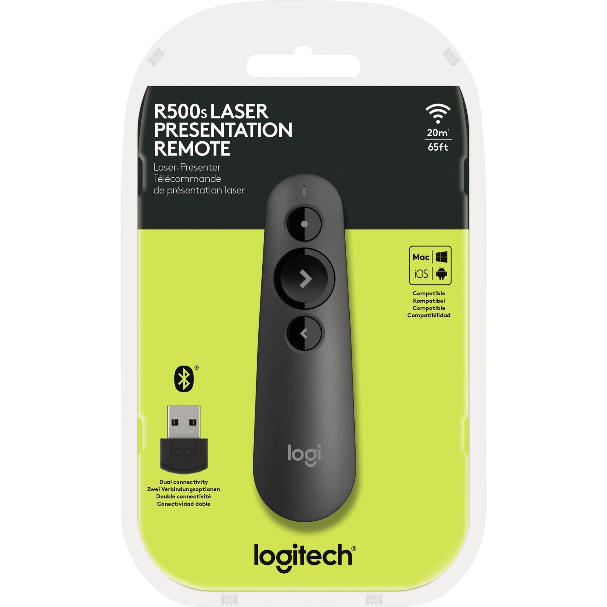 Bezeichnung: Logitech Wireless Presenter R500s 17,5 x 6,6 x 25 mm (B x H x T) Windows®, Mac, iOS, Android universell 20m inkl. USB-Dongle grafit